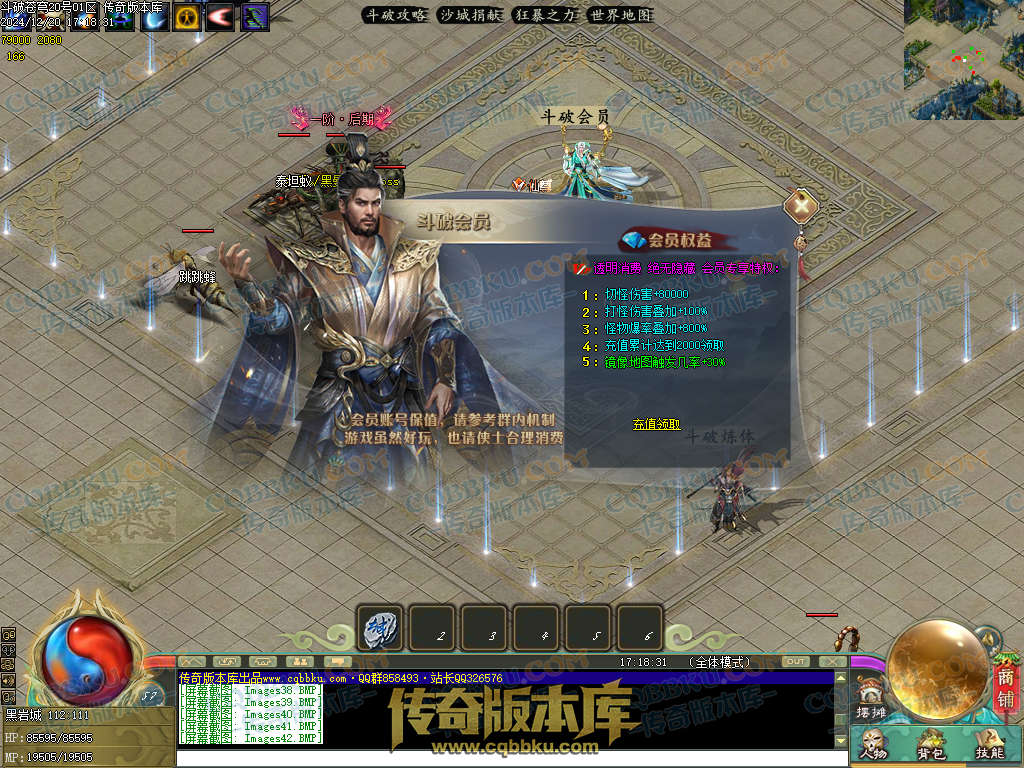 斗破会员∶充值达到20免费领取,背包扩充到120格,赠送神技(半月弯刀)等属性,前期打怪必备