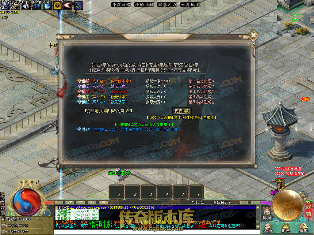 沙城捐献∶200大麦激活沙城捐献、老板土豪可捐献榜一1000(人人捐献到达1000均可享受榜一属性)超强属性