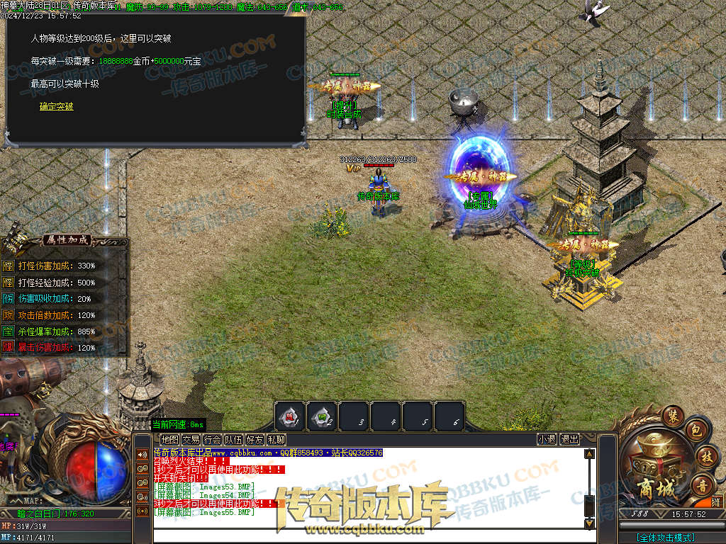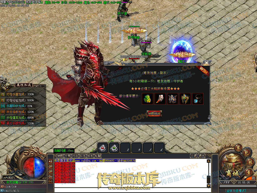 运气好的玩家如果出了烧火棍 或 灭魂剑 那属性都会大大的提升 灭魂剑 有对怪每刀15555的真实伤害