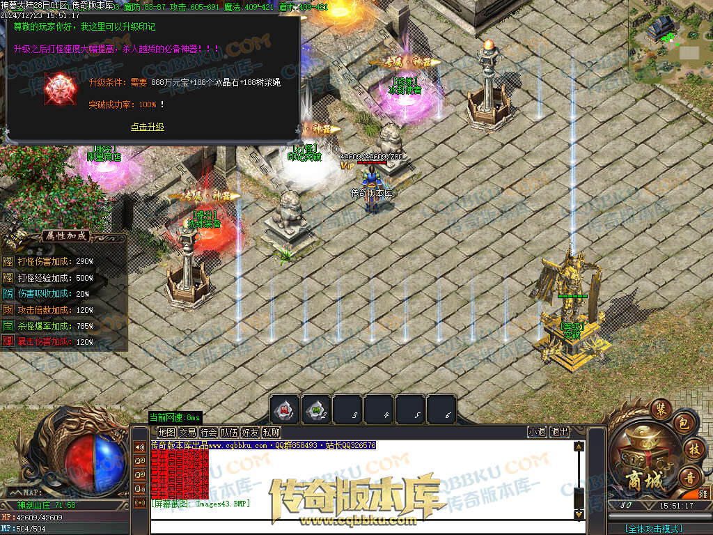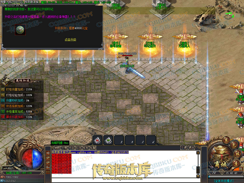 2.有条件的土豪玩家可以花费元宝去土城上方点击NPC(印记合成).属性非常强大.散人也可以打元宝合上去。