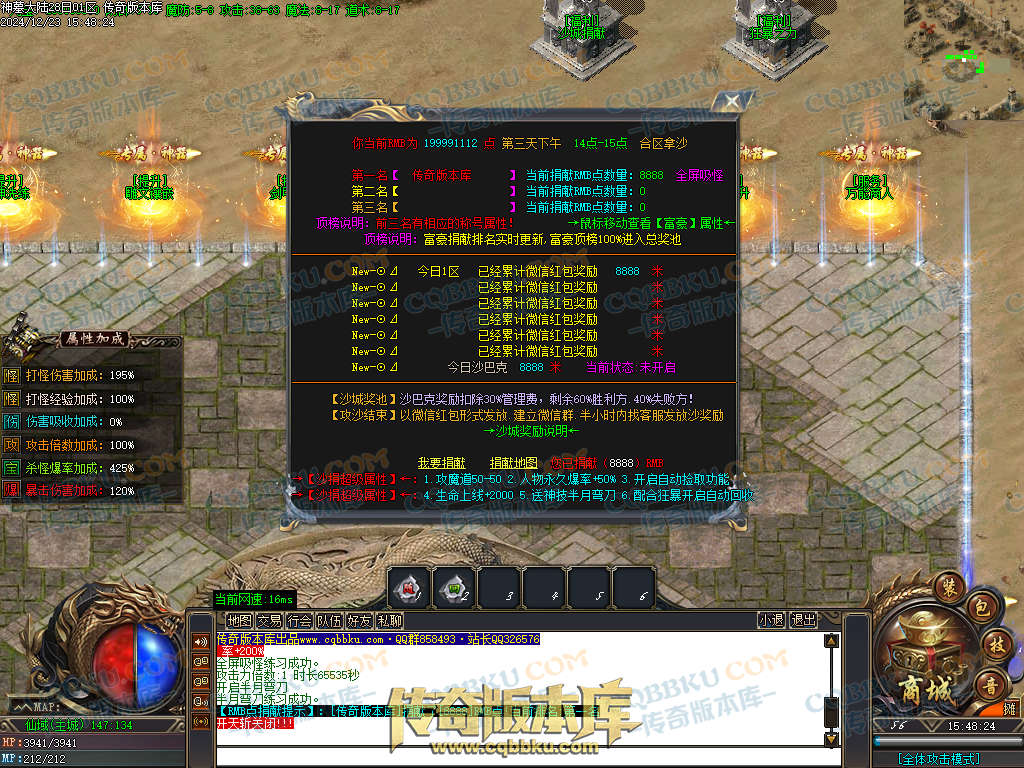 1.捐献+狂暴=300+100RMB点,充值RMB点。