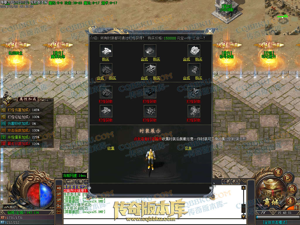 3.本服时装作用也非常大,老板也可以直接把前六件时装合出来激活了.属性也非常可观.对于前中期帮助都非常大!(一级时装25万元宝一件.合成条件二合一)