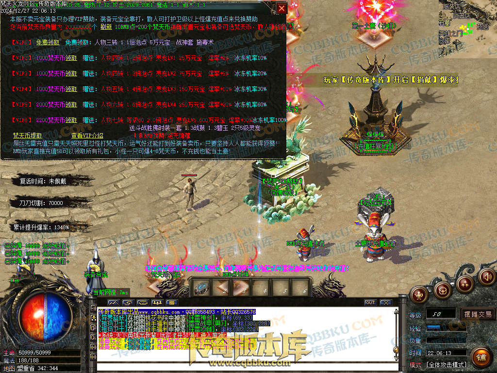 白嫖玩法:1.领取群礼包赠送2000切割+时装-领取免费VIP1-新人地图逐级打怪狂打梵天币用于升VIP6-