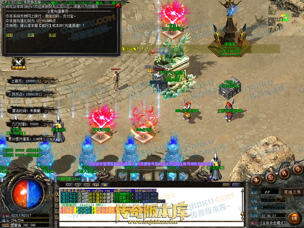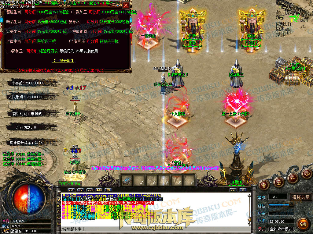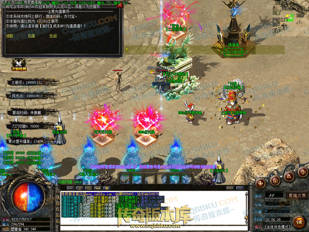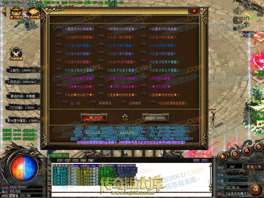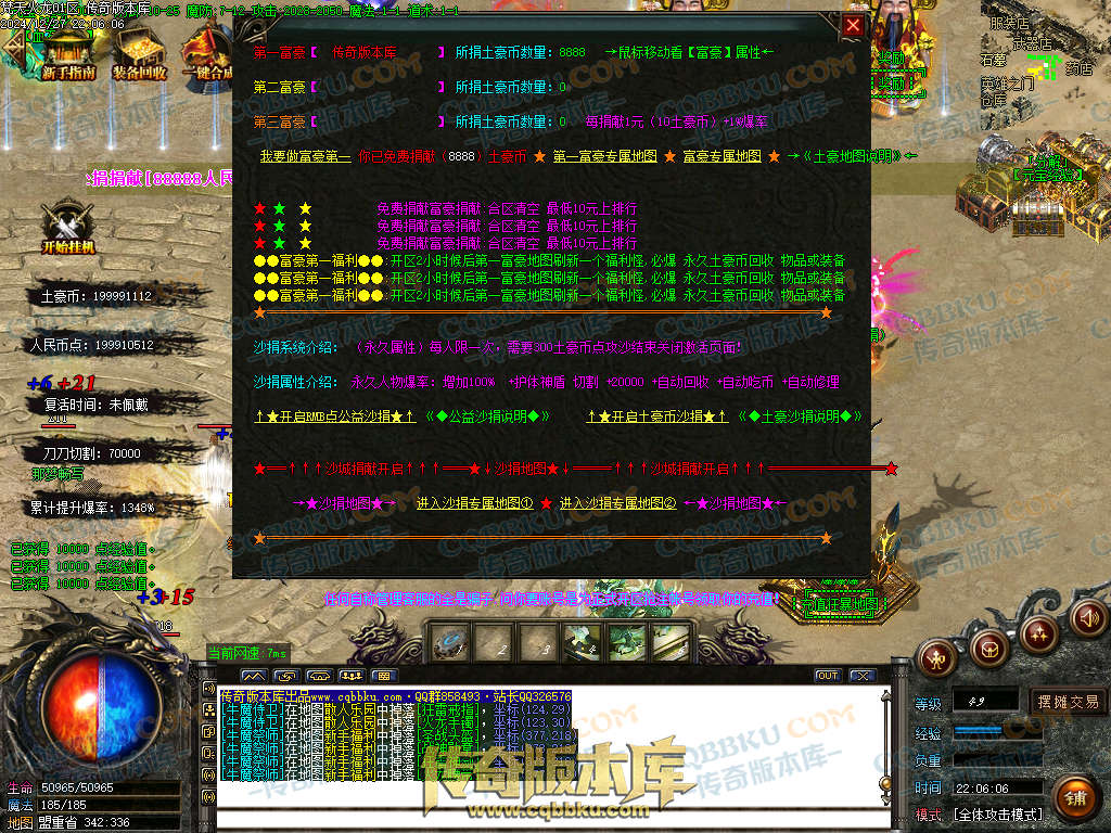 土豪充值玩法:窗口左上角开启沙城捐献(自动回收-自动修理-自动吃币-自动经验宝箱等等,