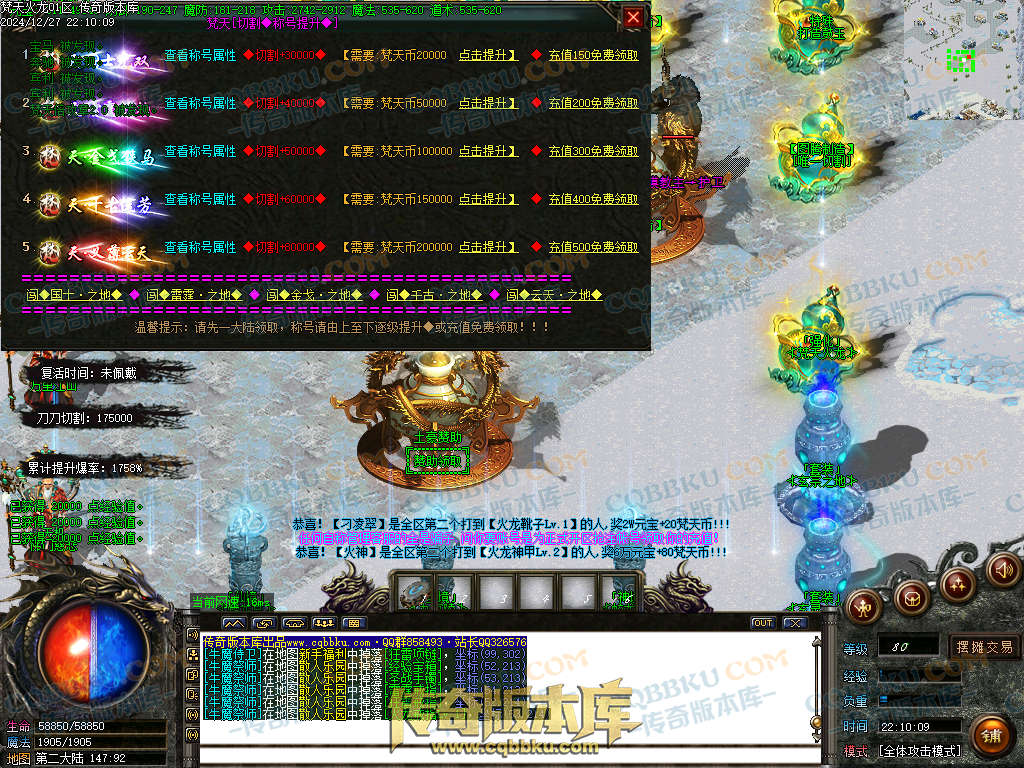 白嫖玩法:2.梵天币可以升级称号,称号获得切割等超强属性,NPC分别1-2-3大陆-