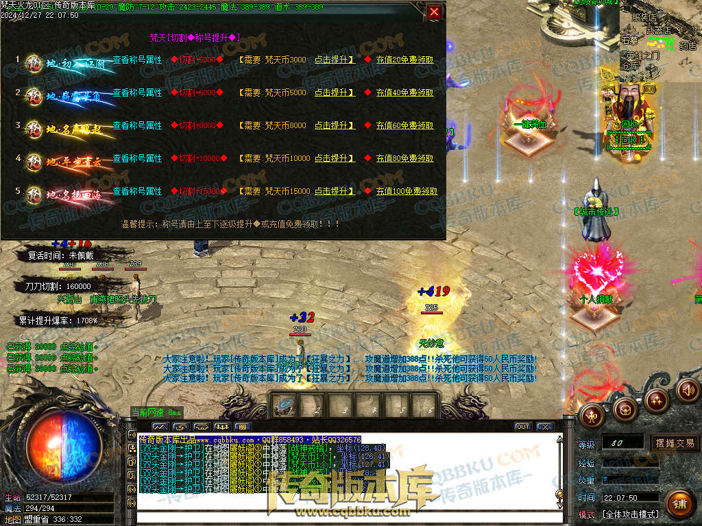 01-304独家梵天火龙二合一复古单职业传奇服务端-ESP插件-带光柱-称号升级-狂暴之力 | ||