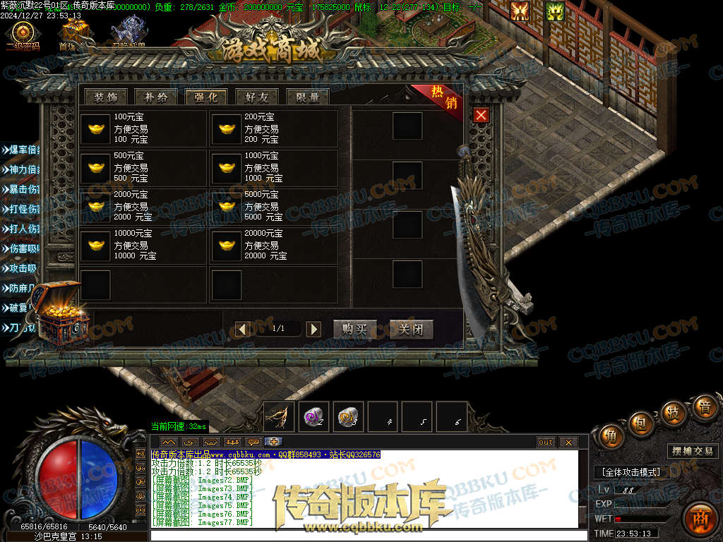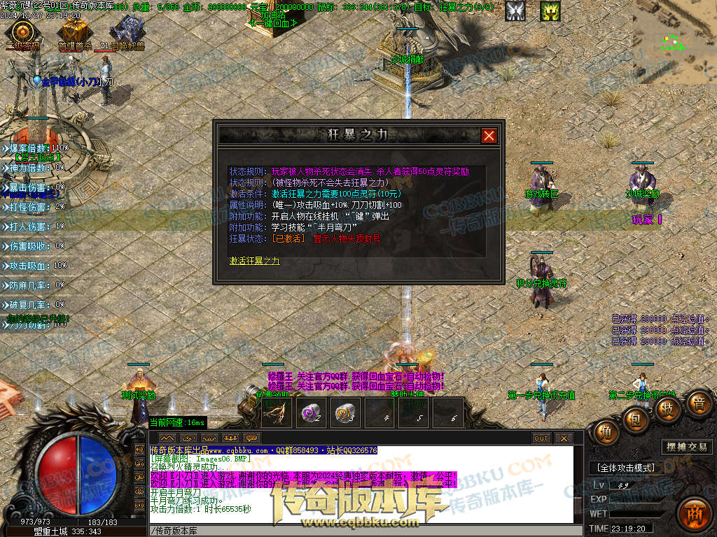 【高级玩法】会员8元(打怪上毒) + 158 满沙捐(20%几率切割怪物1-5%血量.魔法盾) + 10 狂暴(内挂挂机)