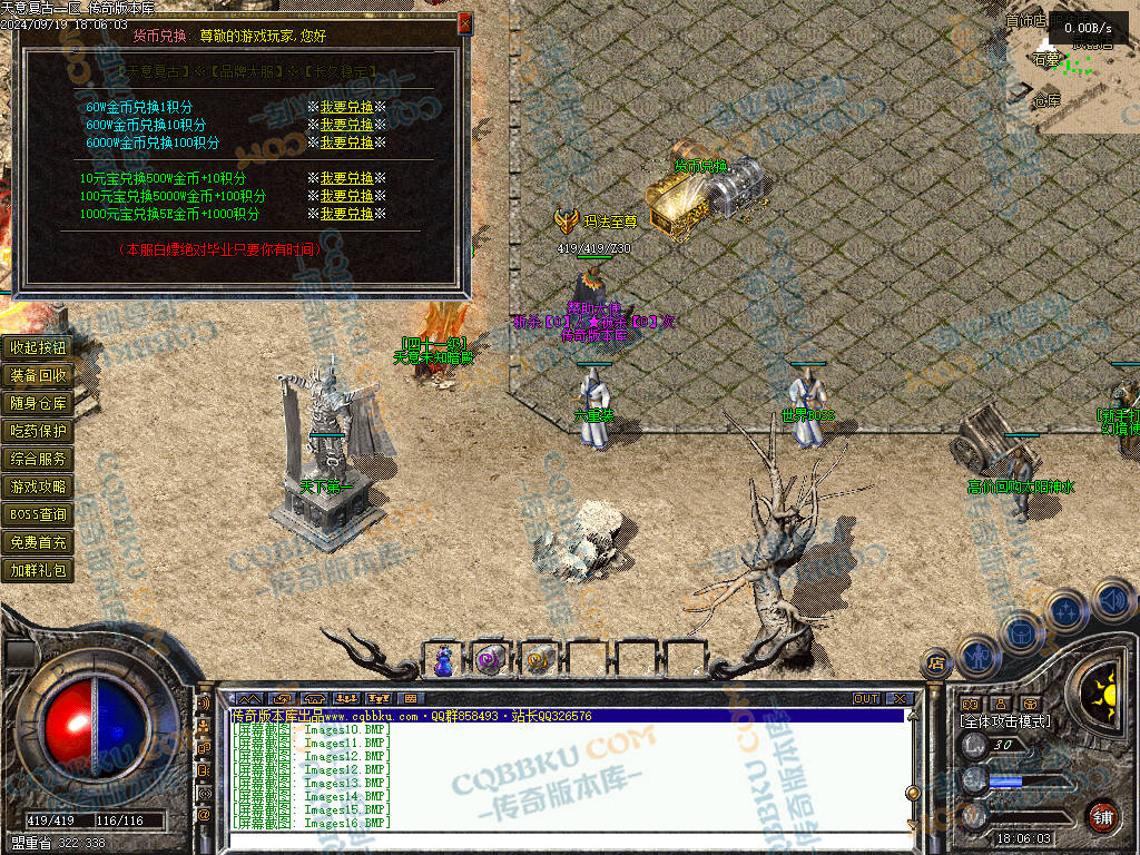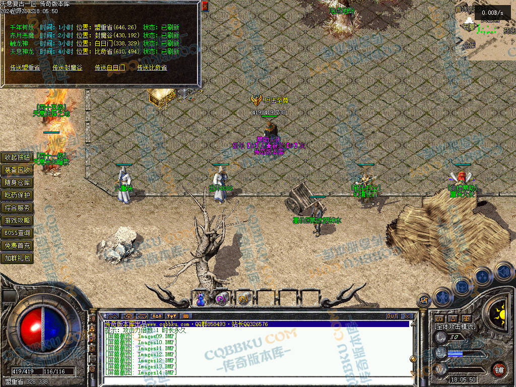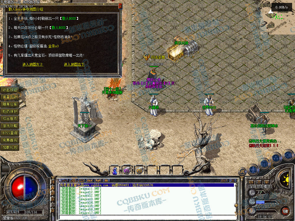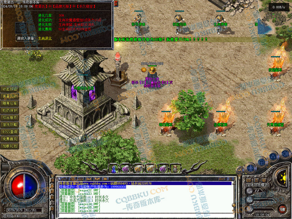 3、增加猪8猪9、玛雅地图(1.5倍经验)、祖玛秘境、神秘空间、魔王宫殿、四方阵、教皇之家等地图,行会争霸地图(每晚8点,胜出者奖励200W金币)