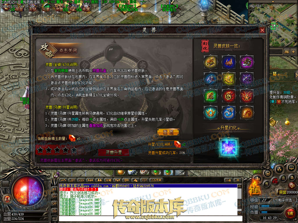 坐骑说明:坐骑新手初始地图领取,开启[灵兽礼盒可获得各种灵兽皮肤,皮肤可在“灵兽”界面幻