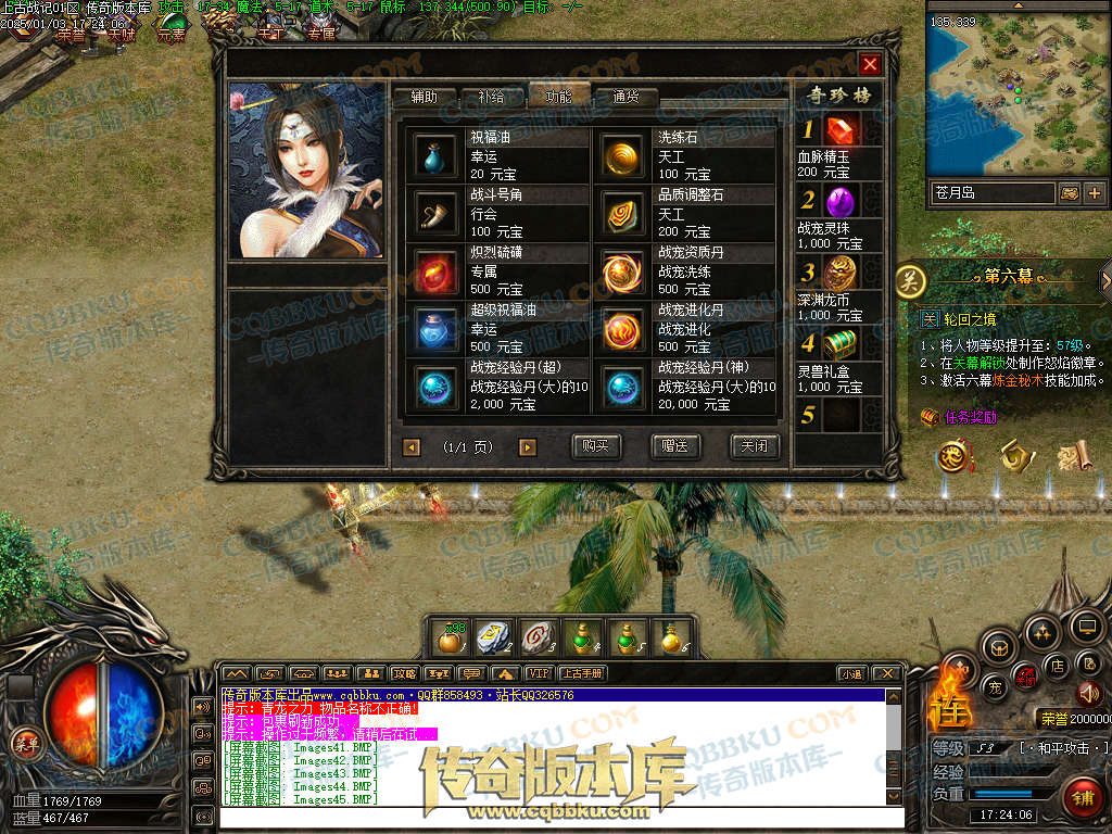 拿完赞助,王城“沙城捐献”处用元宝买盾牌(在线泡点),然后商城买战宠灵珠,随便个