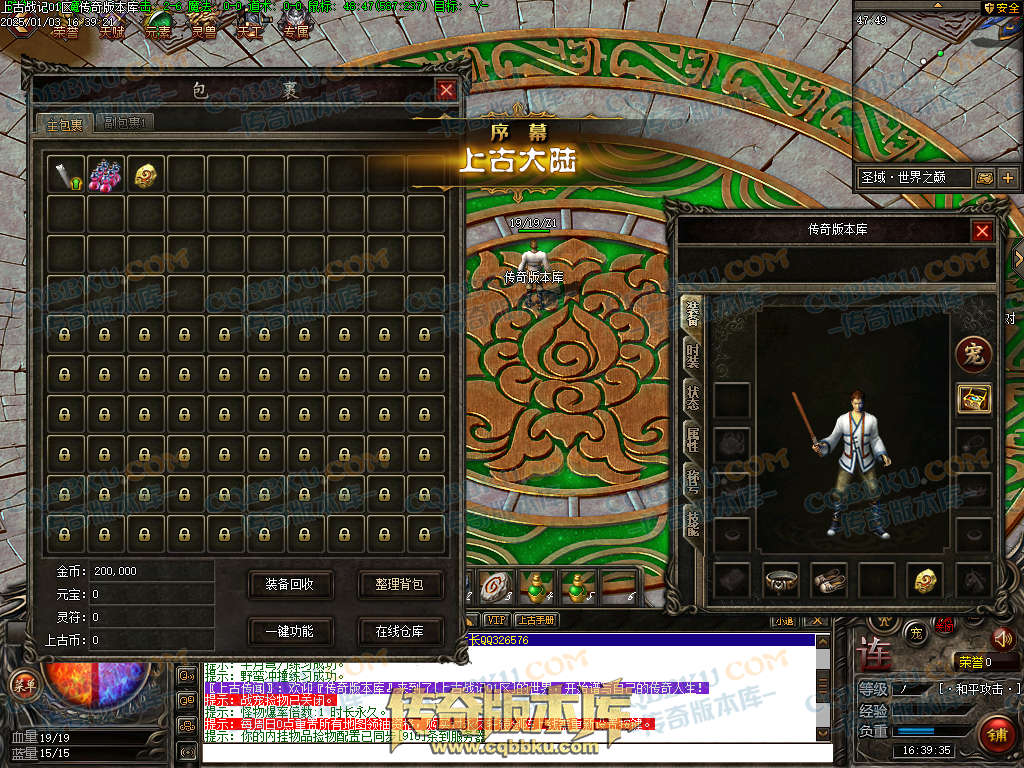 上古战纪是宠物公益三职业传奇,传奇客户端,宠物系统,天赋系统,内功连击,带大背包和自动回收系统,此端采用翎风引擎精心耗时制作,更多细节参考详情图文介绍