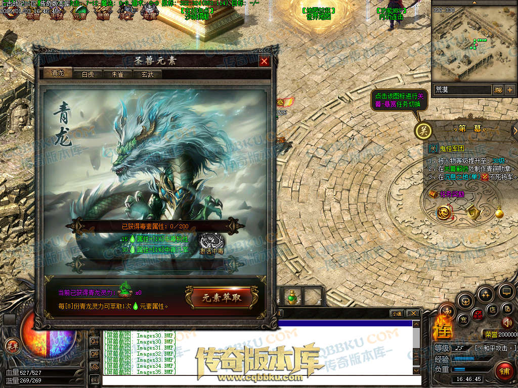 元素说明:元素属性需要在“元素”界面使用四种圣兽灵力激活后生效,未激活时,元素属性仅为人