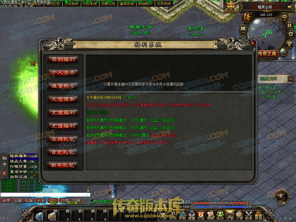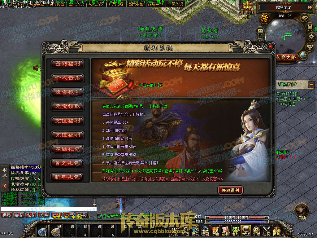 十职业传说是三国魂宠版三职业传奇,修仙天赋BUFF,魂罗魂兽魂将,暗黑元素,光柱,魂蛋世界,带大背包和自动回收系统,此端采用翎风引擎精心耗时制作,更多细节参考详情图文介绍
