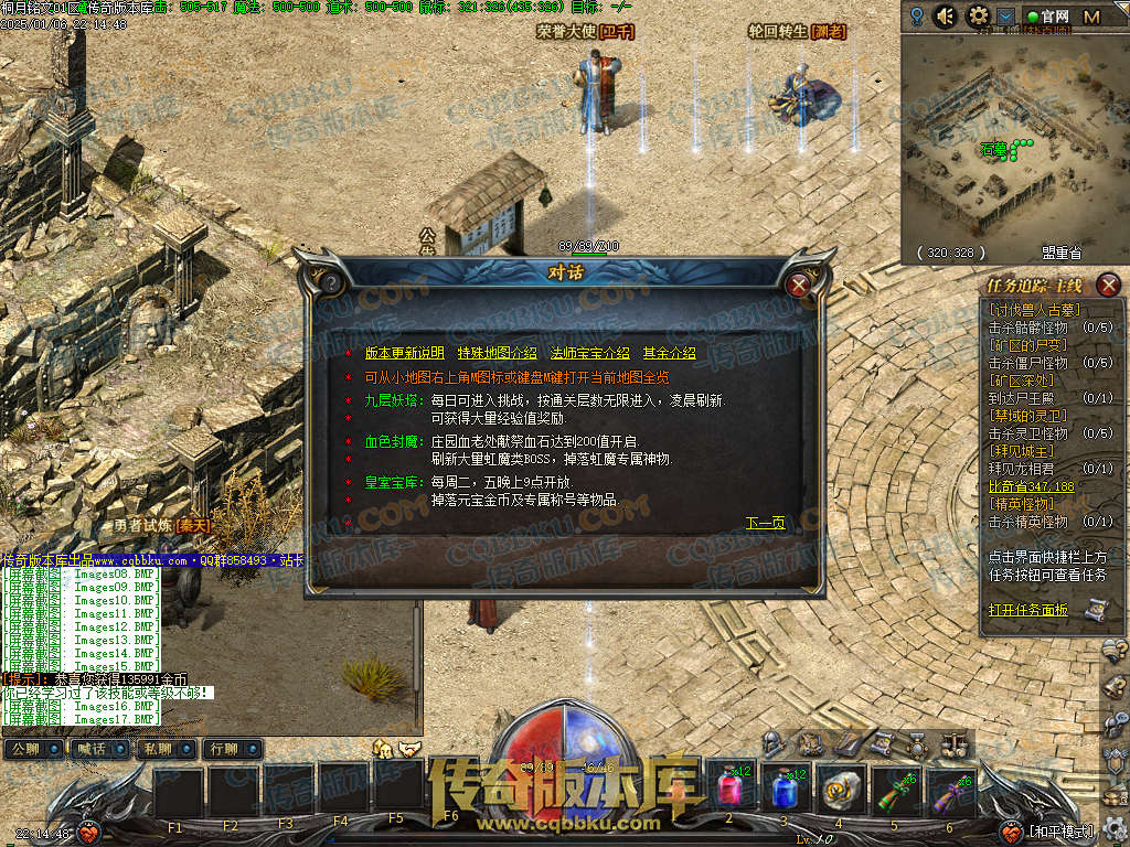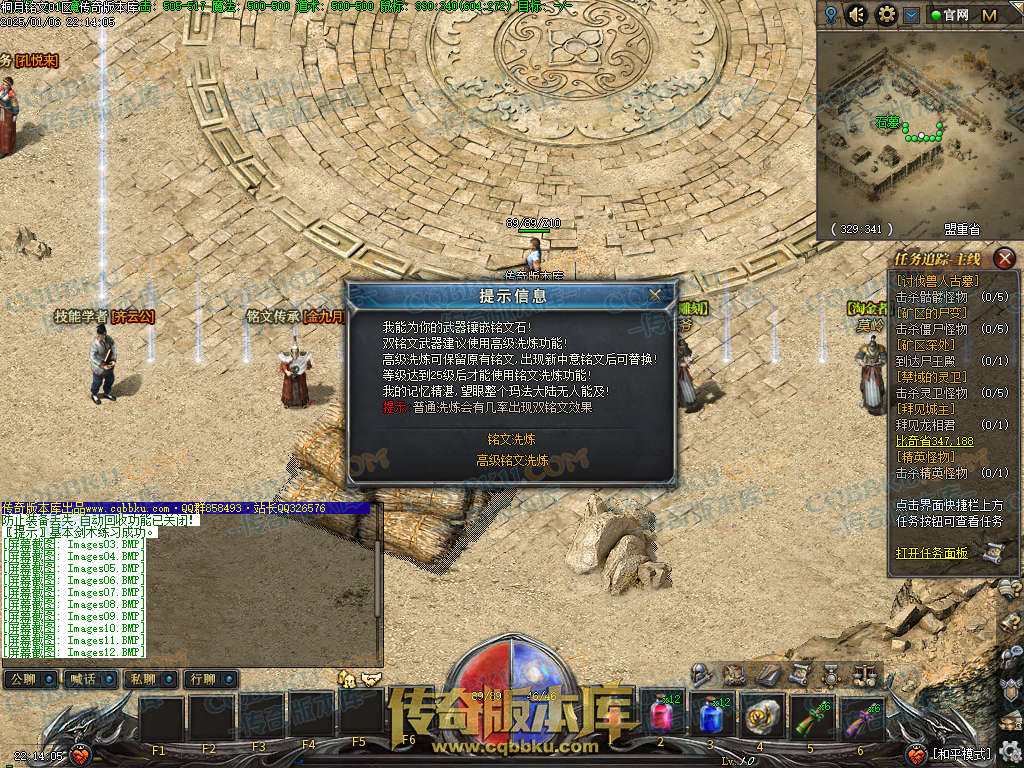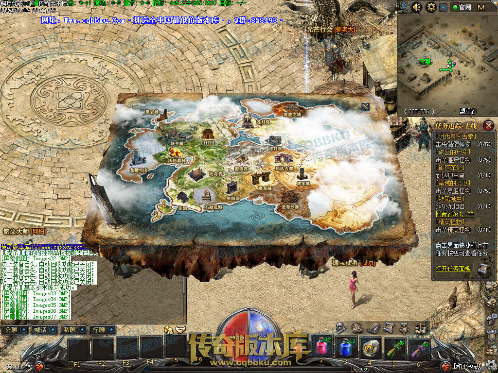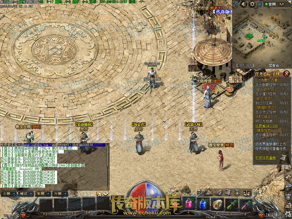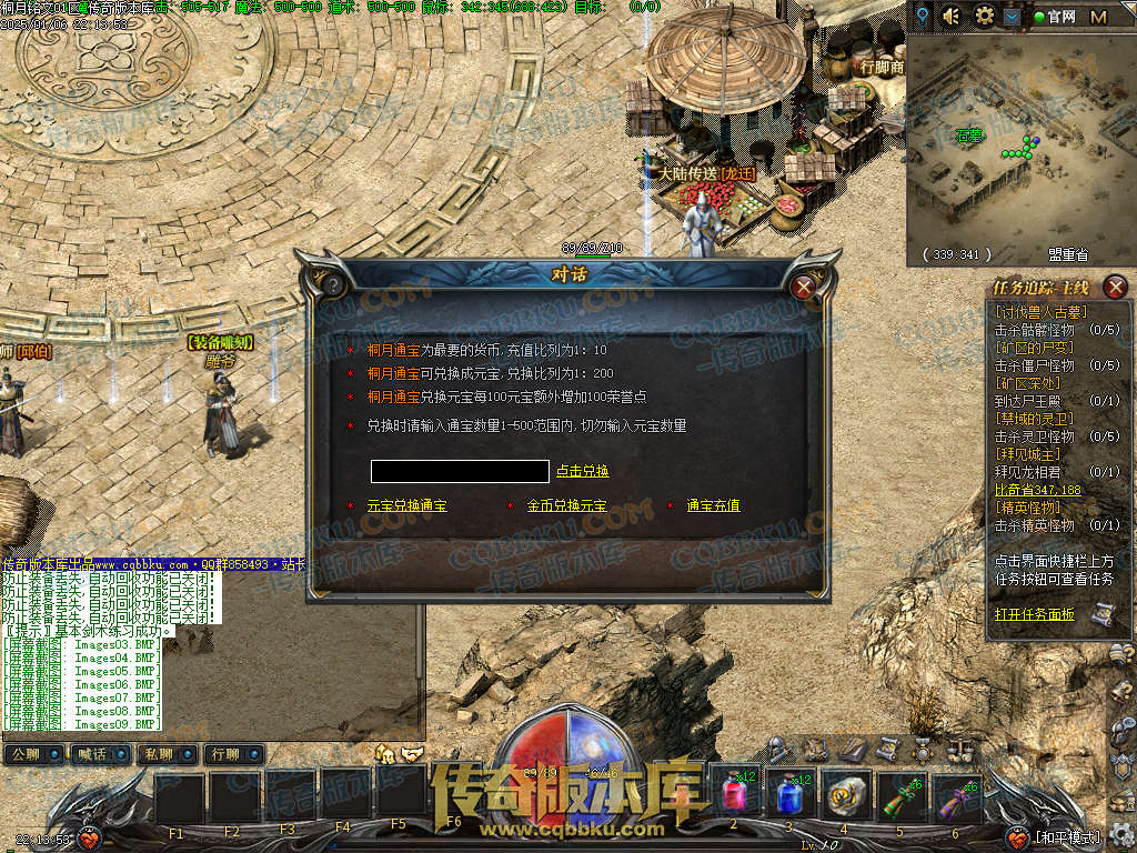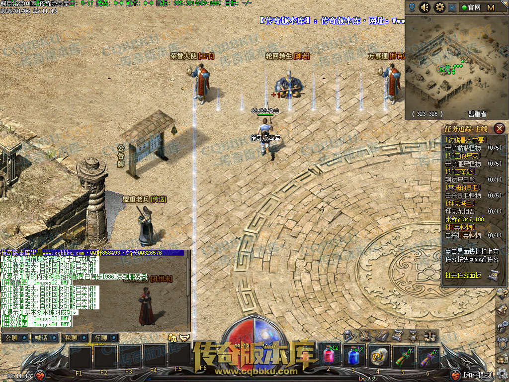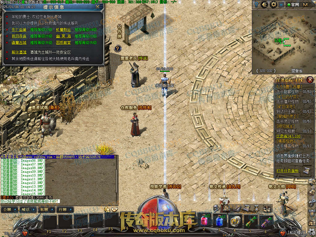 2、到达比奇城后开启任务系统,按照任务流程开始跟随任务升级,任务所需要去的地图可以通过比奇老兵传送.(所有大陆内的老兵都可以传送该大陆内的所属地图)