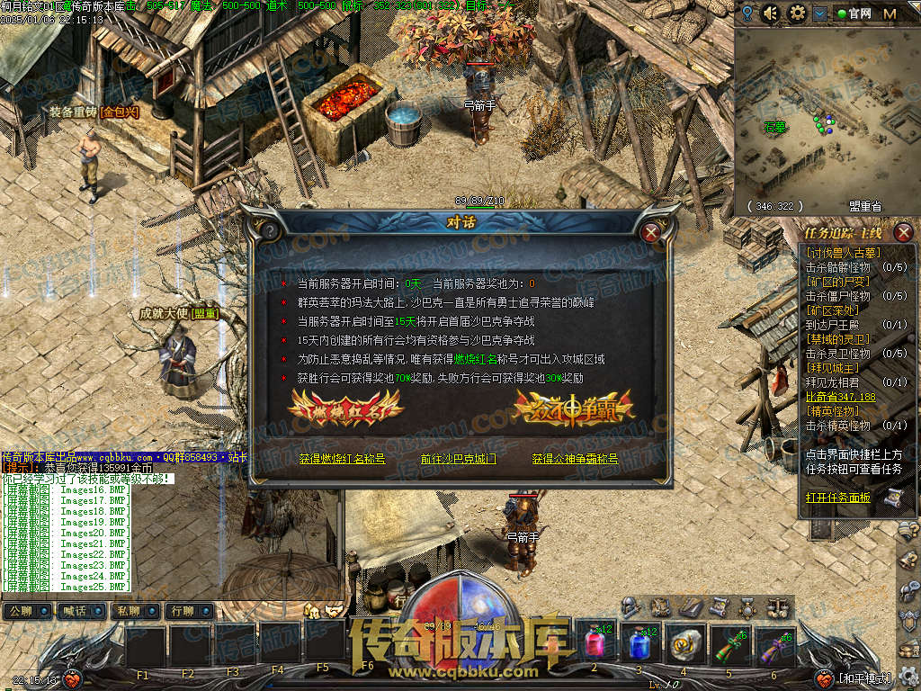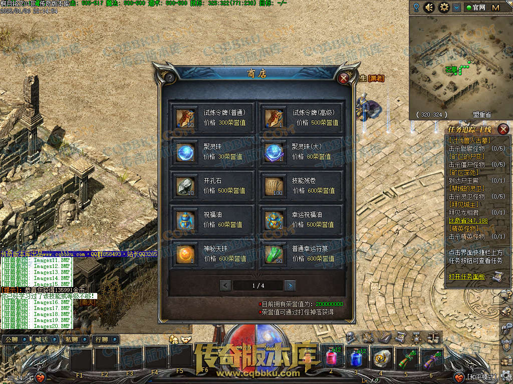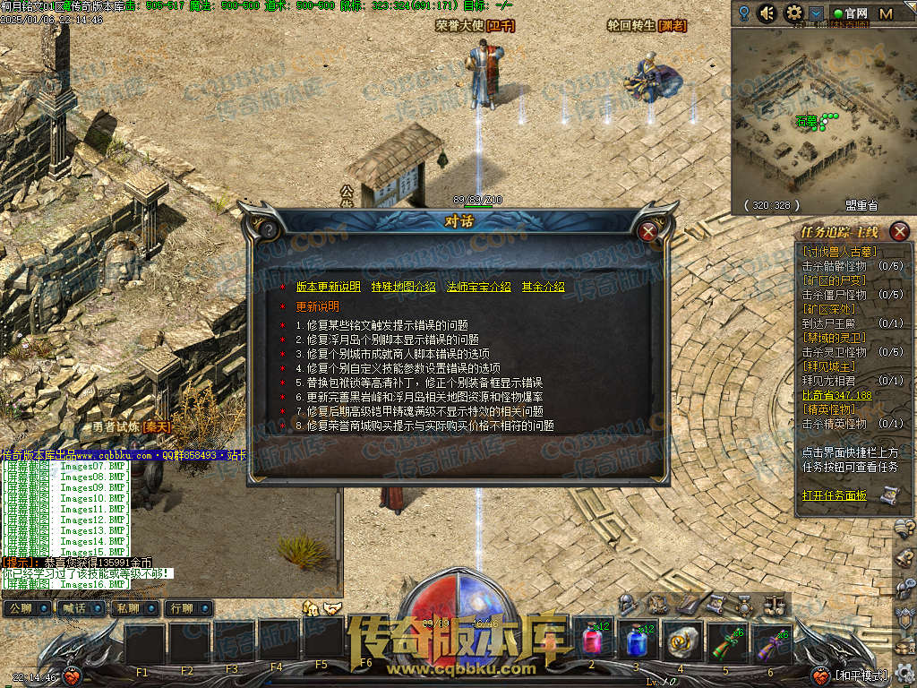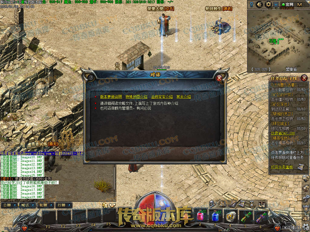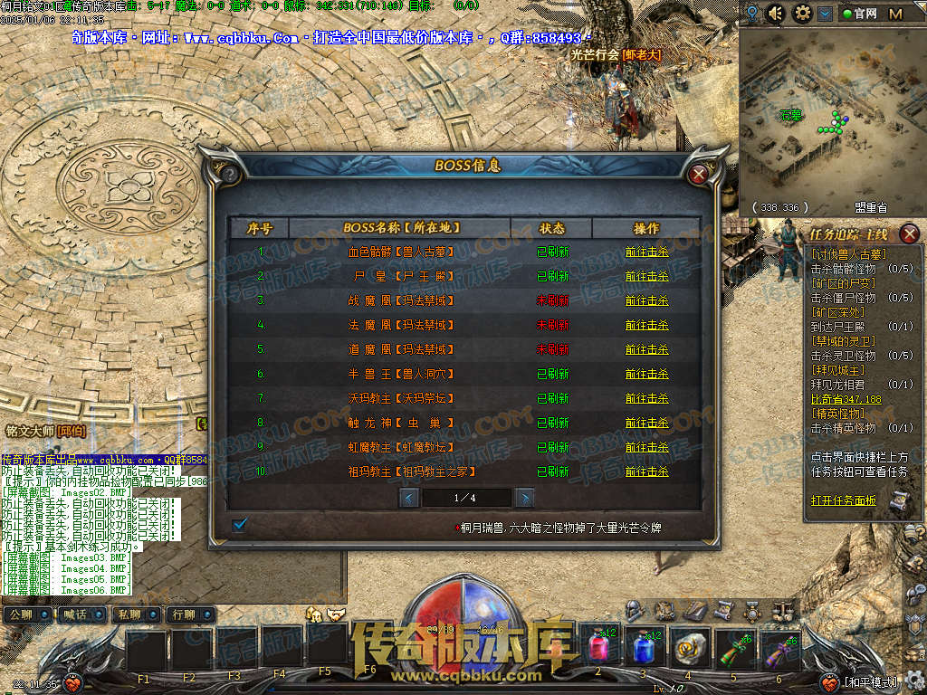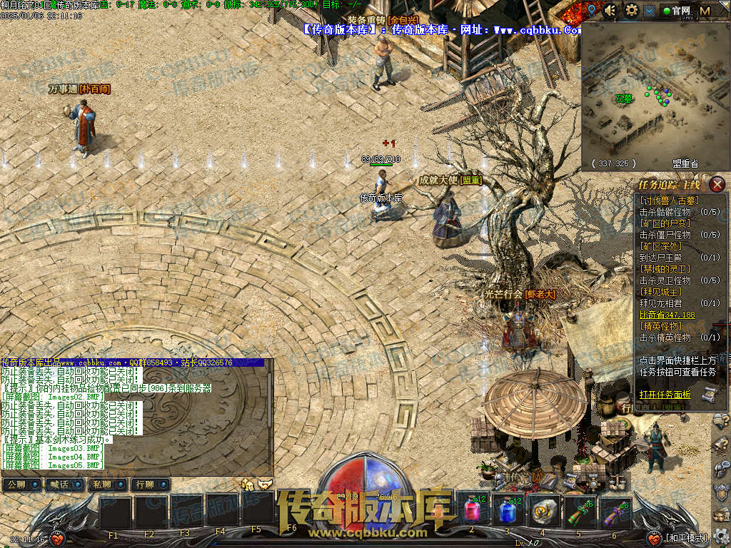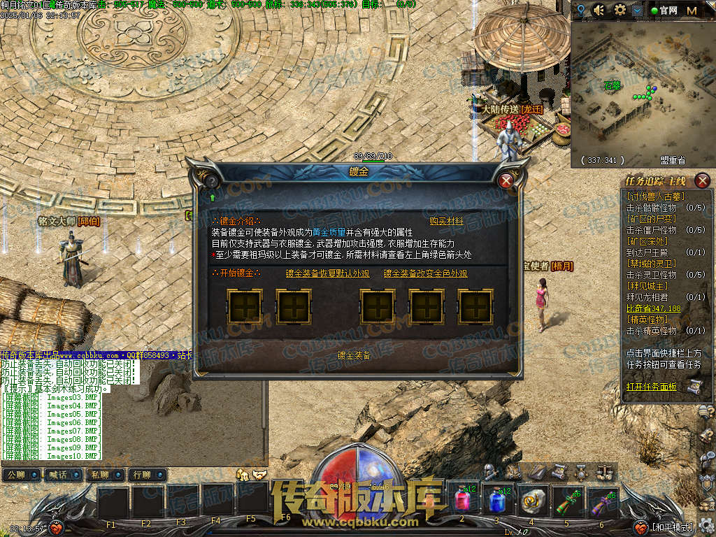 2、到达比奇城后开启任务系统,按照任务流程开始跟随任务升级,任务所需要去的地图可以通过比奇老兵传送.(所有大陆内的老兵都可以传送该大陆内的所属地图)