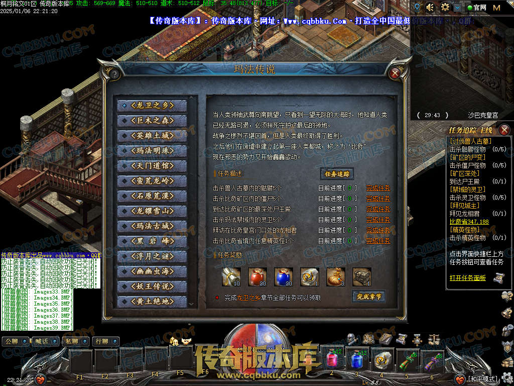 相同的道理一直做任务至完成盟重章节,差不多大概28级,任务也会送技能与装备等,