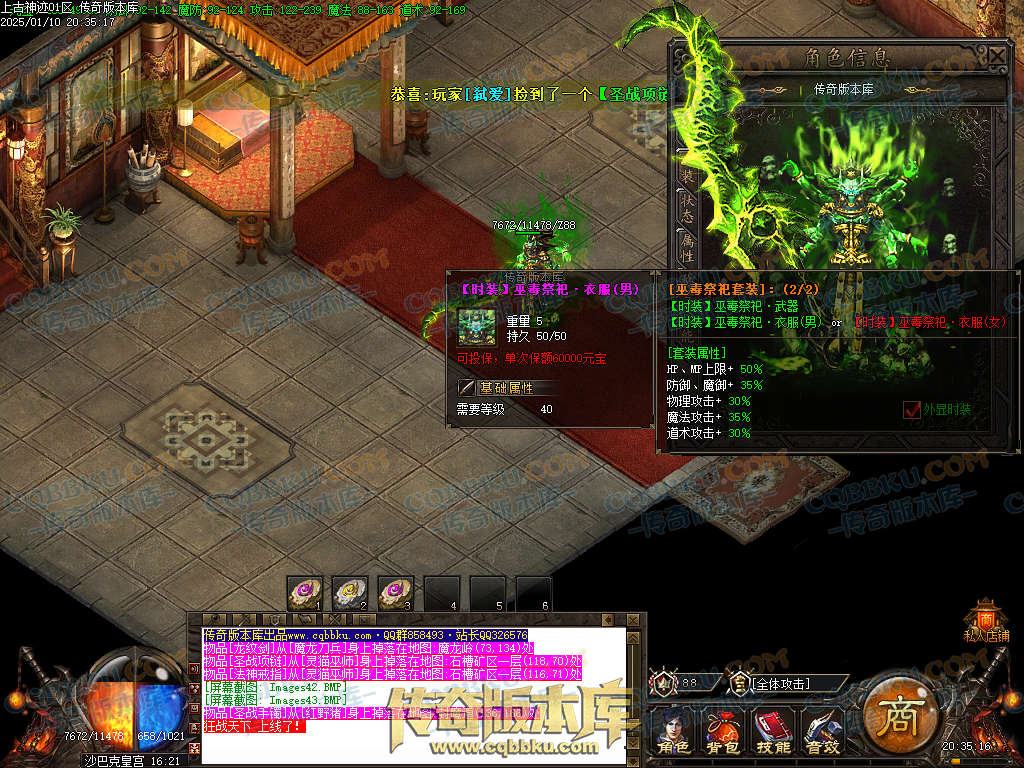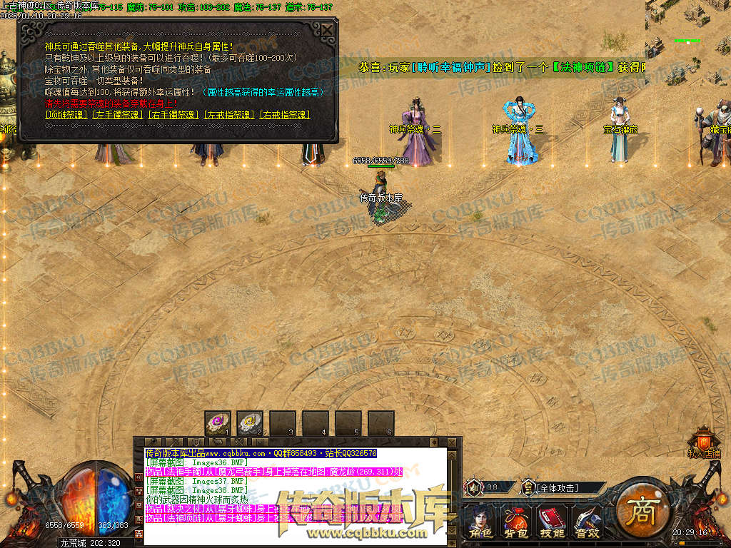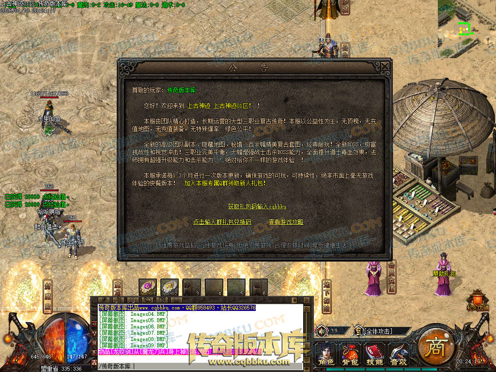 上古神迹是复古三职业传奇,带假人,带光柱,装备投保,血魔商人,神兵锻造,带大背包和自动回收系统,此端采用新GOM引擎精心耗时制作,更多细节参考详情图文介绍