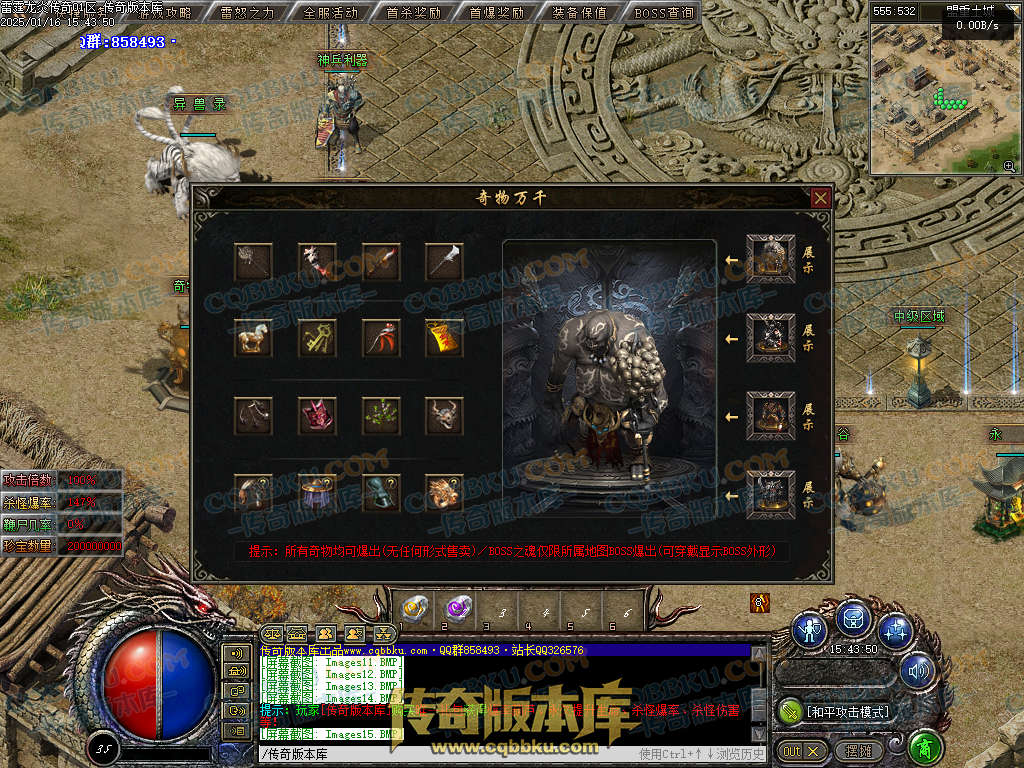 独家特色神器:每只BOSS都有几率掉落自己身上的一个部件,百余种奇物 玩家自行探索