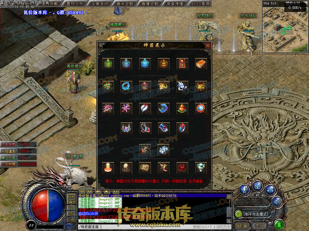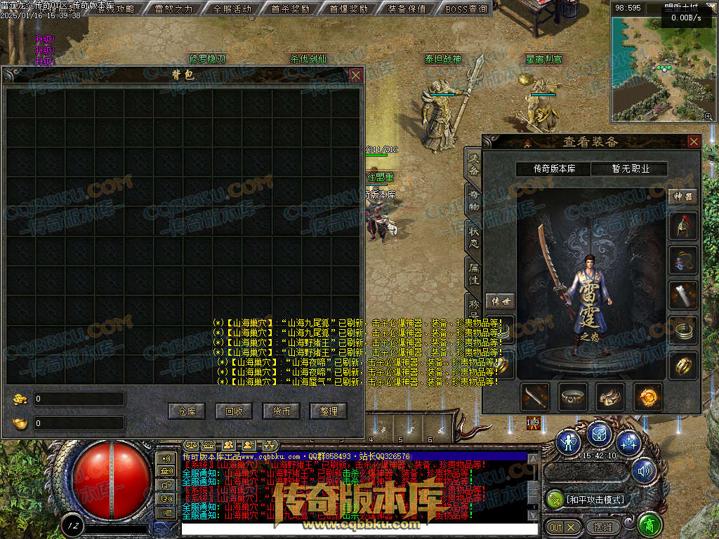 独家特色活动:随机擂台,刷新都是红色BOSS,中间刷新超级BOSS,人人随机看脸打怪, 特色拔剑BOSS,只有拔专属血剑才可挑战超级BOSS,人人有机会