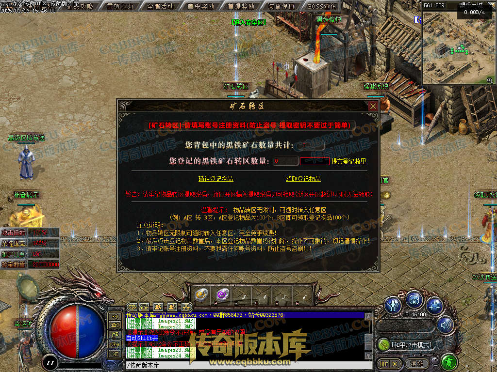珍宝和黑铁矿可以免费转区,NPC在摆摊区域,珍宝1:10 元宝1:100