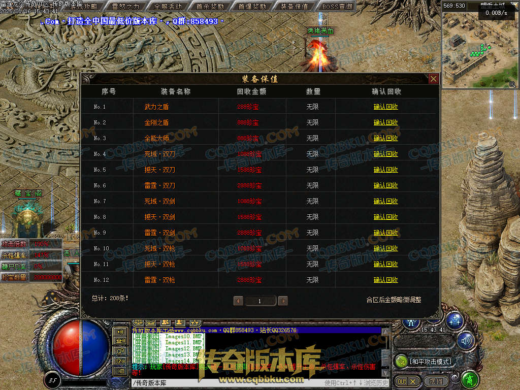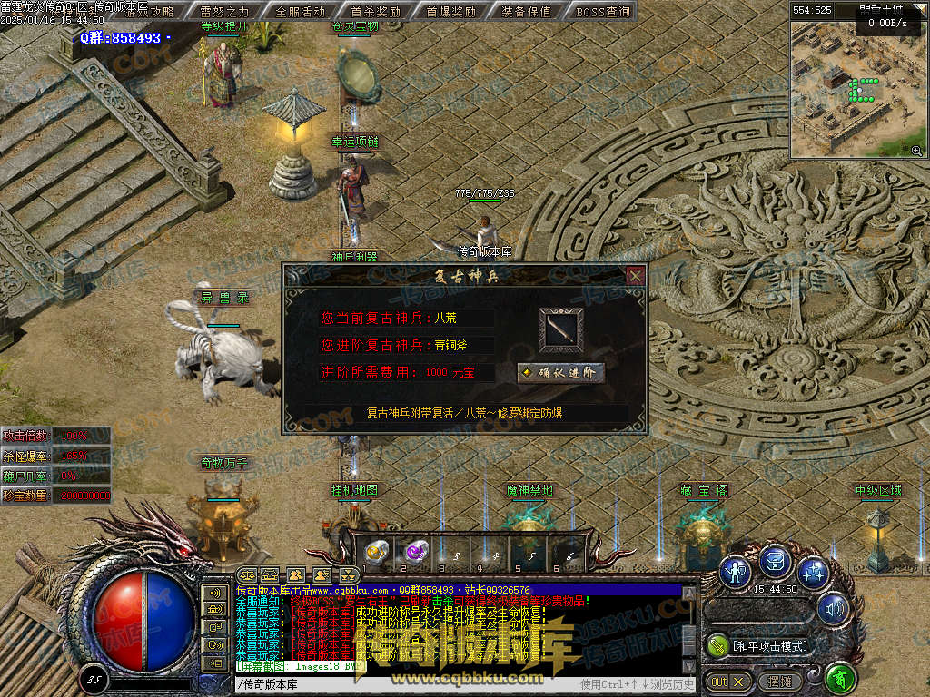 复古神兵是复活+额外血量 =50R元宝满级 (剩下的只有BOSS爆出 再无合成)