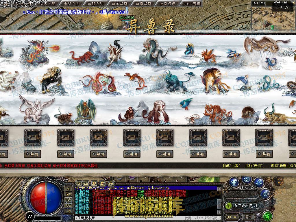 独家特色功能:山海异兽,80%还原上古山海经怪物,分别藏匿在各个地图底层,玩家自行探索,异兽BOSS比较强大,携带异兽装备