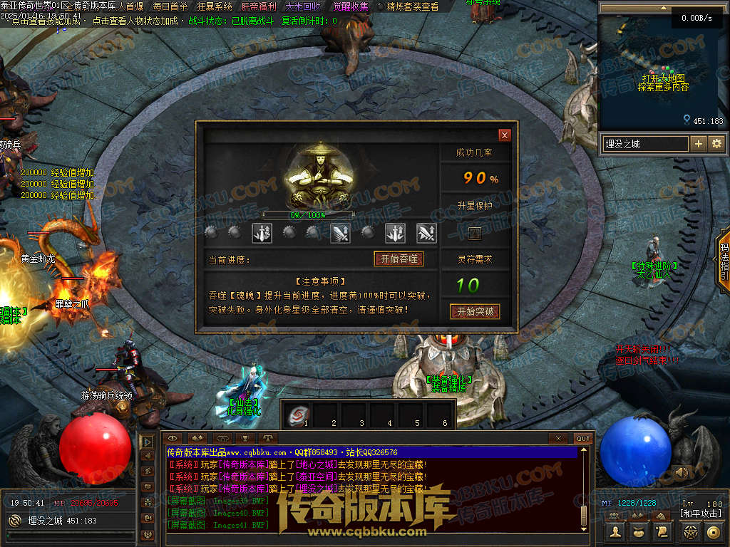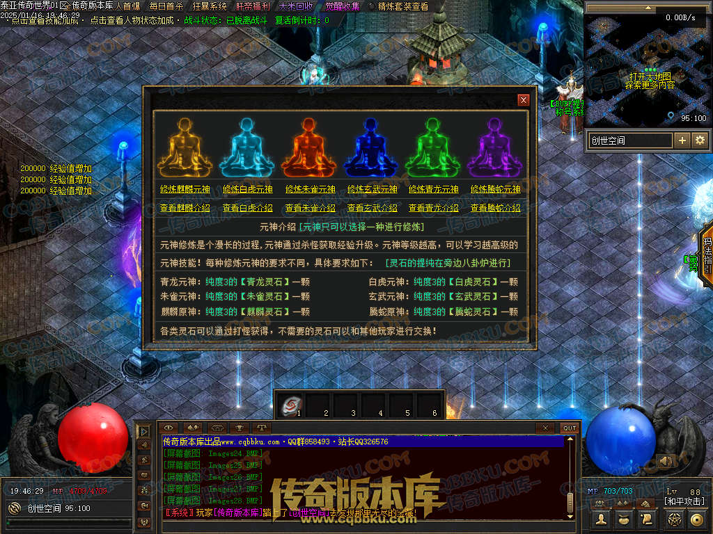 各类灵石只能通过打怪获得!晋升元神材料也是怪物爆!大量爆出可以自动吃!属于长期玩法耐玩