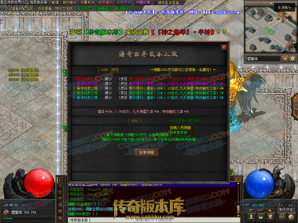 < 王者会员>:需要.3000充值积分 = 激活防 蛛 网功能 + 〔 神之烙印·主神 〕+ 600000元宝 全属性+20%