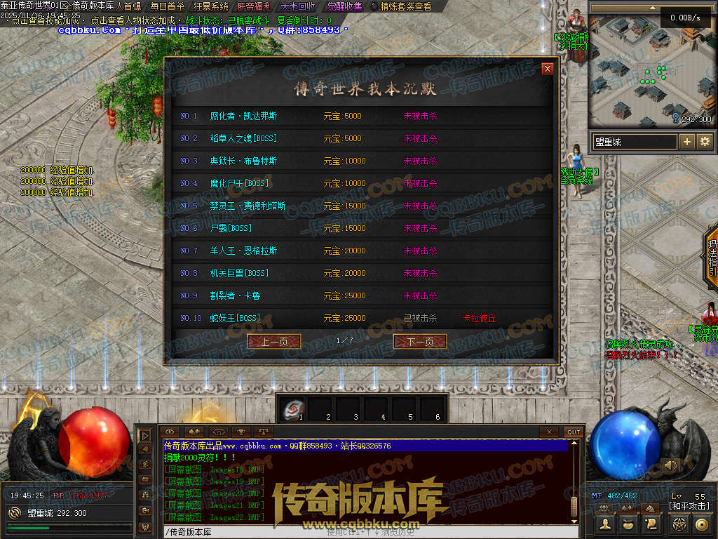本服<一大陆怪物刷新时间>:小怪5分钟 大怪20分钟