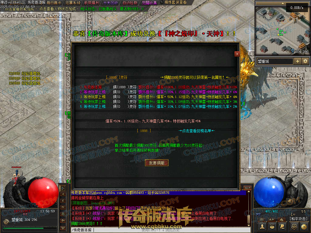 < 钻石会员>:需要.2000充值积分 = 激活防 冰 冻功能 + 〔 神之烙印·天神 〕+ 300000元宝 全属性+15%