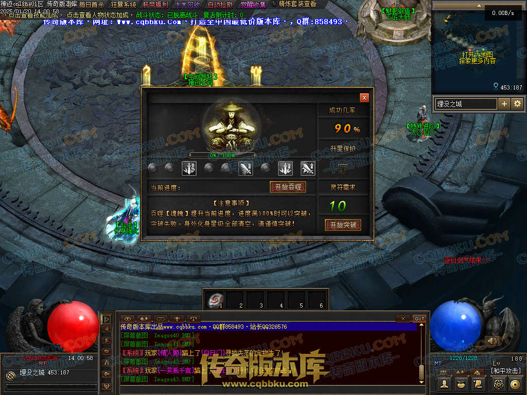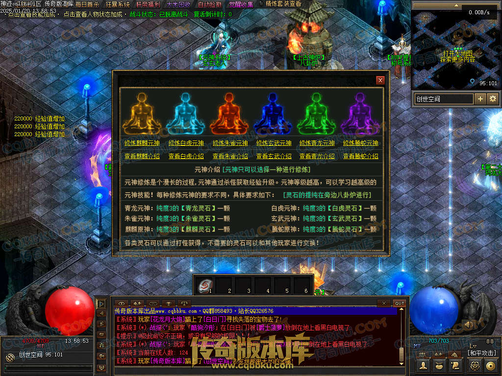 各类灵石只能通过打怪获得!晋升元神材料也是怪物爆!大量爆出可以自动吃!属于长期玩法耐玩