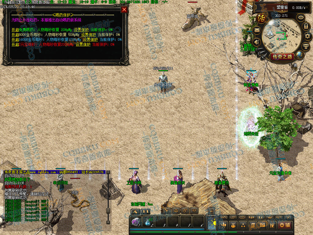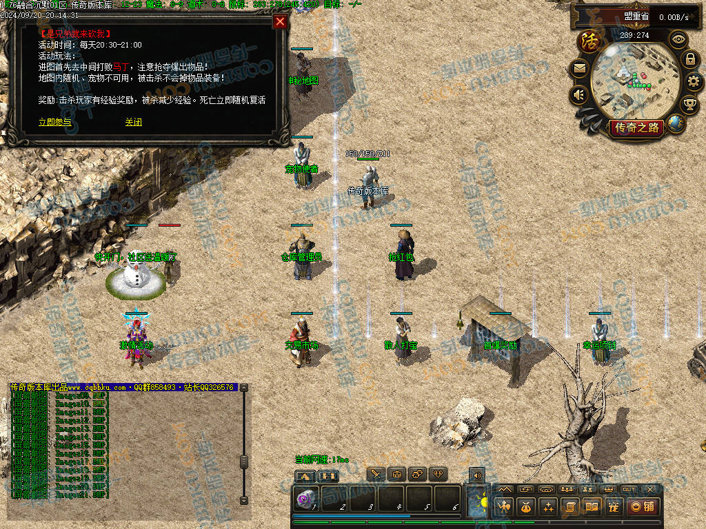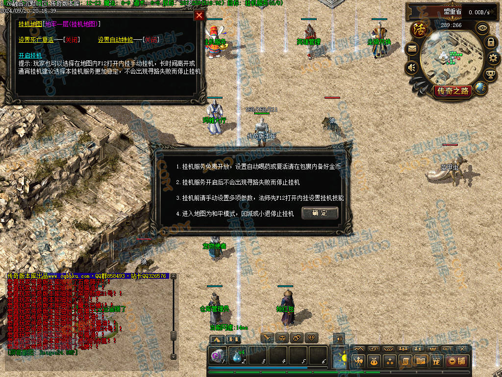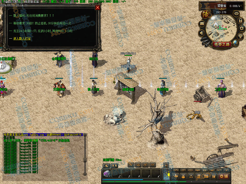 4 老干部活动中心 土城大树方向进入 人物背包服务列表里面有自助BOSS刷新 进入老干部活动中心,可以金币刷新BOSS(为了方便玩家打神物)玩家量力而行 多数BOSS为远程攻击 金币只有回收或者打首爆获得 没任何充值方式
