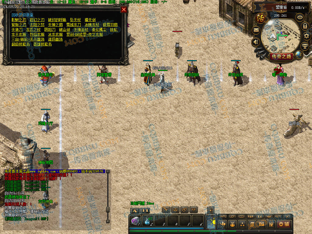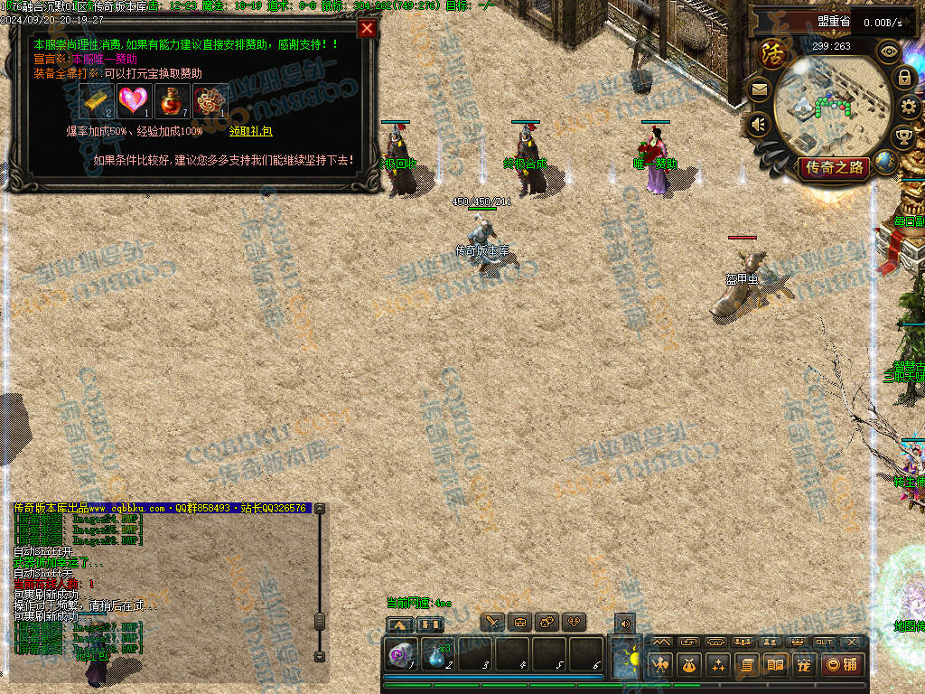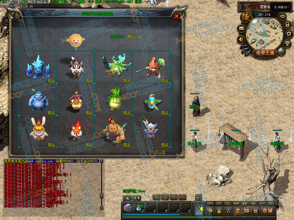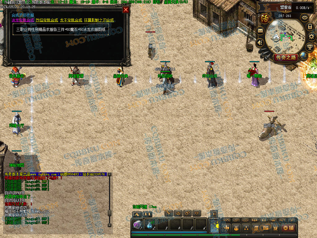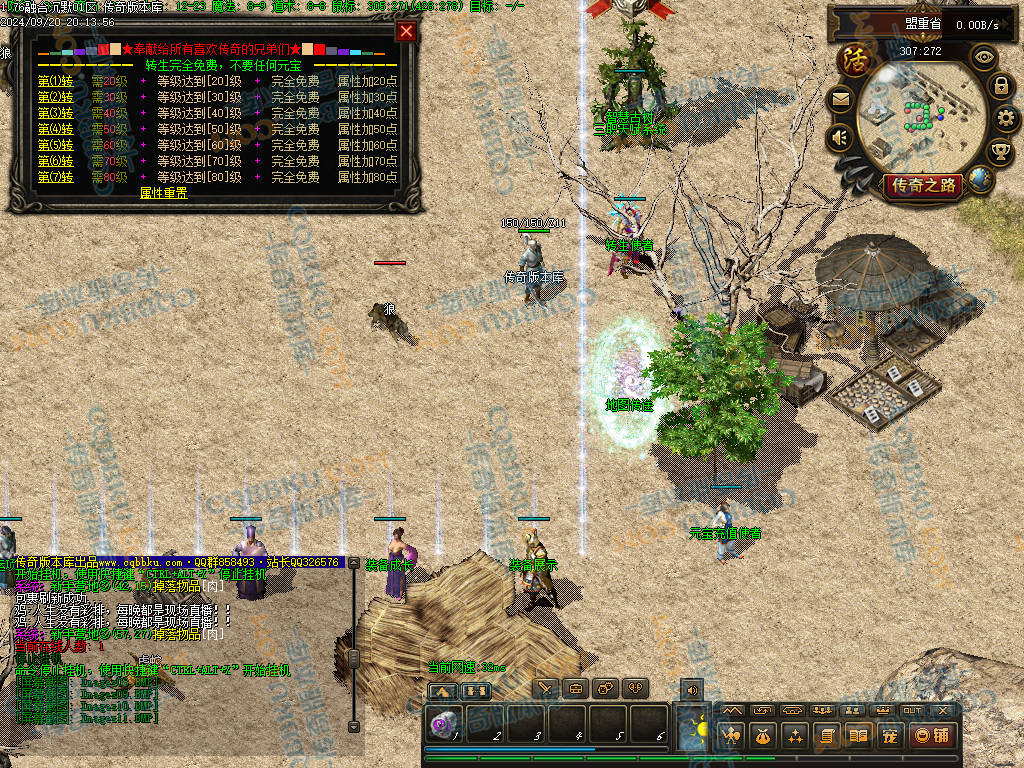 4 老干部活动中心 土城大树方向进入 人物背包服务列表里面有自助BOSS刷新 进入老干部活动中心,可以金币刷新BOSS(为了方便玩家打神物)玩家量力而行 多数BOSS为远程攻击 金币只有回收或者打首爆获得 没任何充值方式