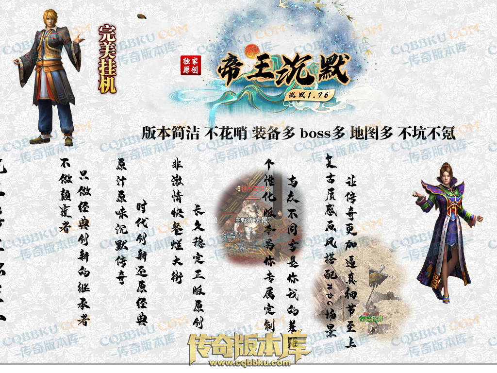 帝王沉默是沉默微变三职业传奇,带假人功能,自动回收,第五大陆,铭文,带大背包和自动回收系统,此端采用翎风引擎精心耗时制作,更多细节参考详情图文介绍