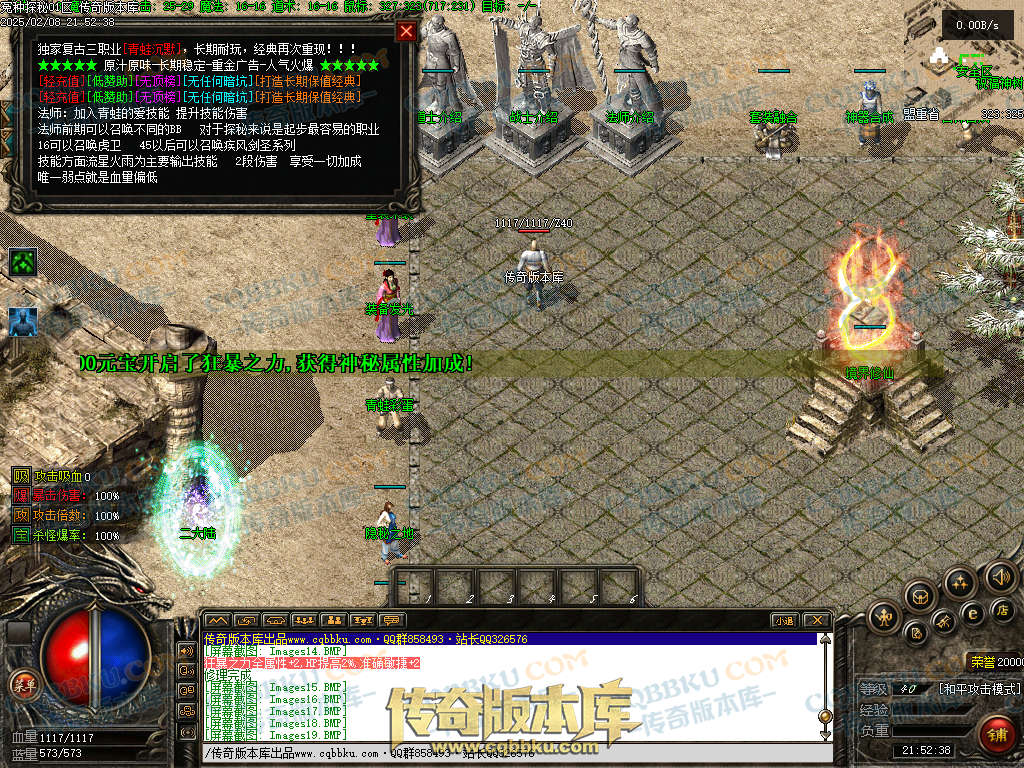 这个版本库主打复古三职业,战士、法师、道士各司其职 ,高爆发的战士、高伤害的法师和能召唤宝宝的道士,经典搭配,战斗体验拉满。