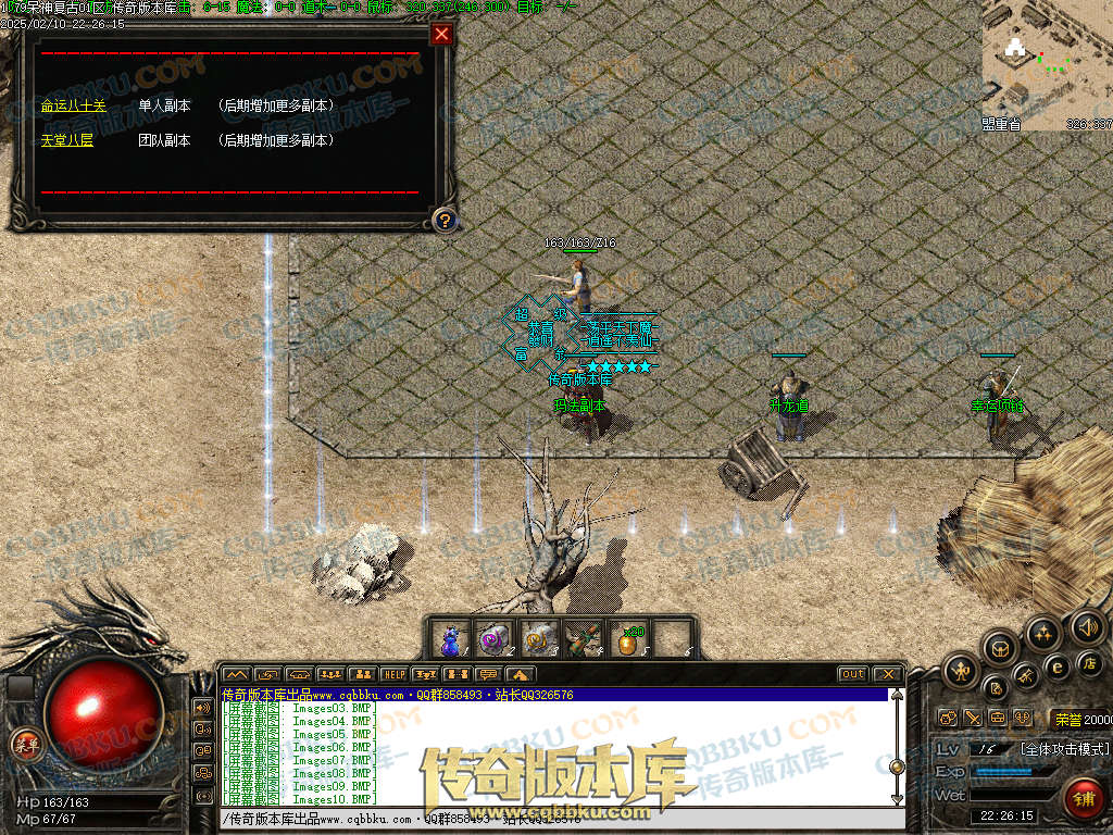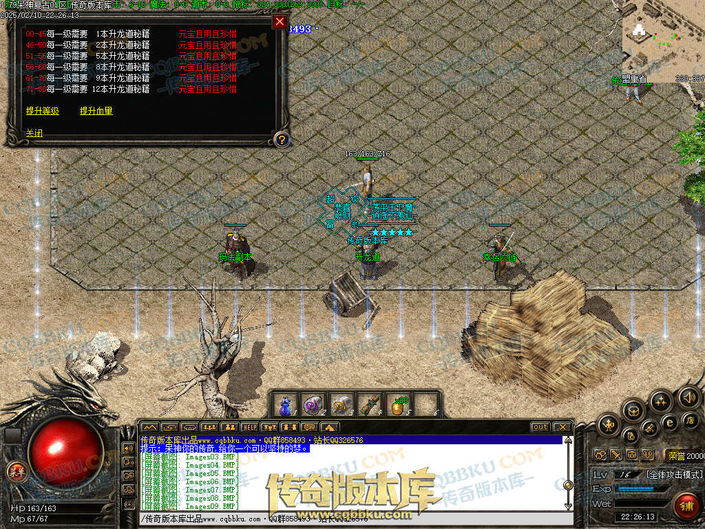8、前期推荐职业道士、法师(更新法师群体治疗术)在白日门天尊那,前期法师升级非常快!进入土城的血争之地用金币刷级(可组队带道、战)战士中后期PK首选!