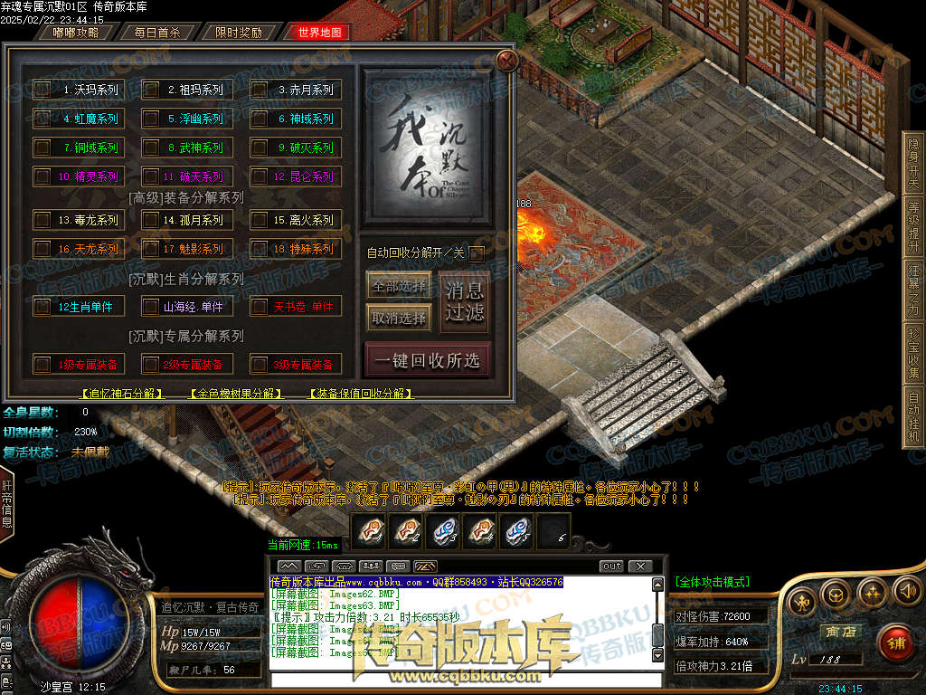 弃魂专属沉默是单职业15大陆传奇,带假人功能,插件功能是由ESP支持,带大背包和自动回收系统,此端采用GOM引擎精心耗时制作,更多细节参考详情图文介绍