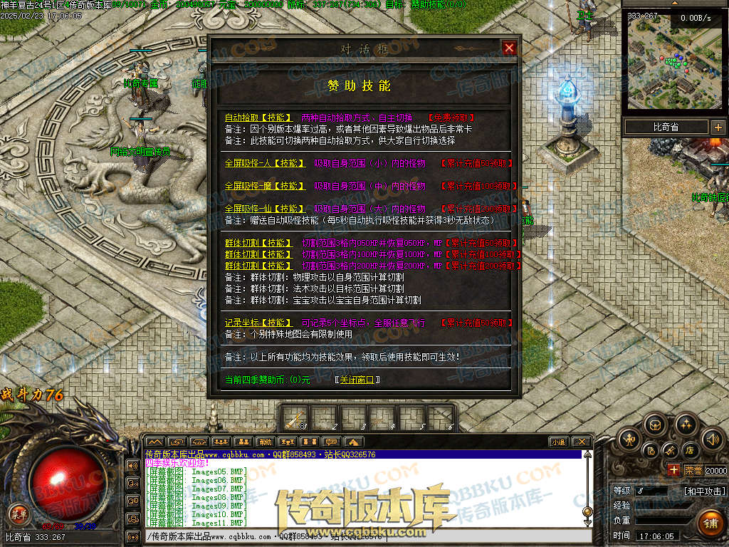 2.增加赞助技能NPC(全屏吸怪,自动吸怪,群体切割,坐标记录)
