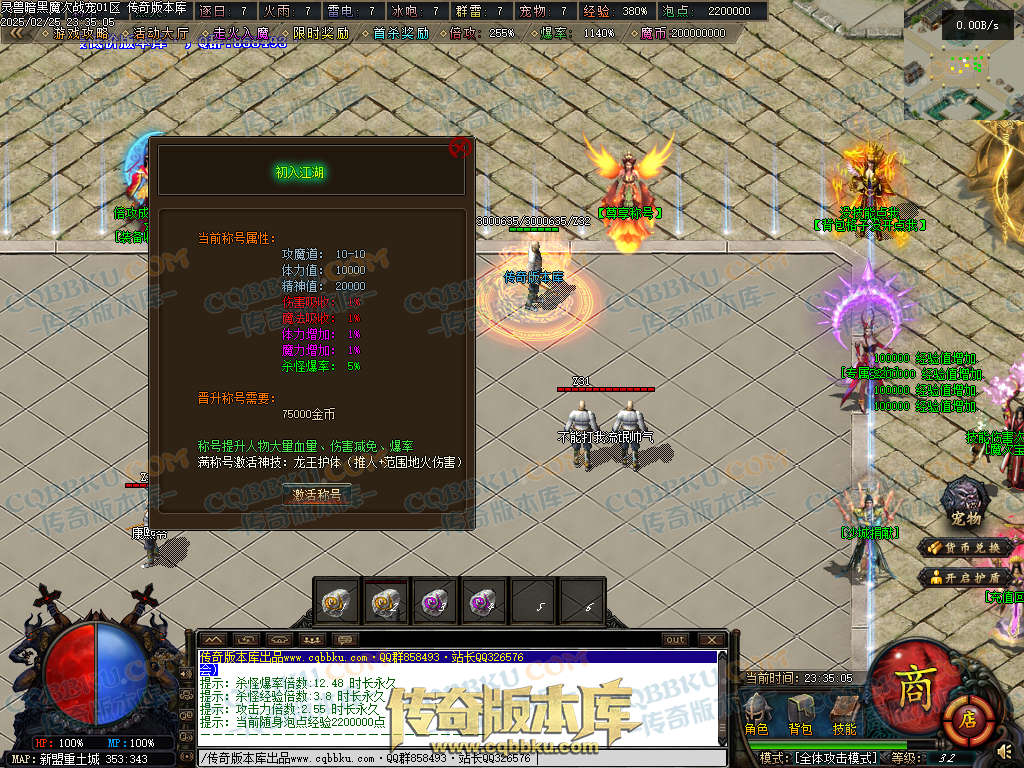 新增大量远程近战神技 同样触发魔次 另外新增终极神技 刀刀群体刺杀:狂舞刺杀 推动火墙神技:龙王护体