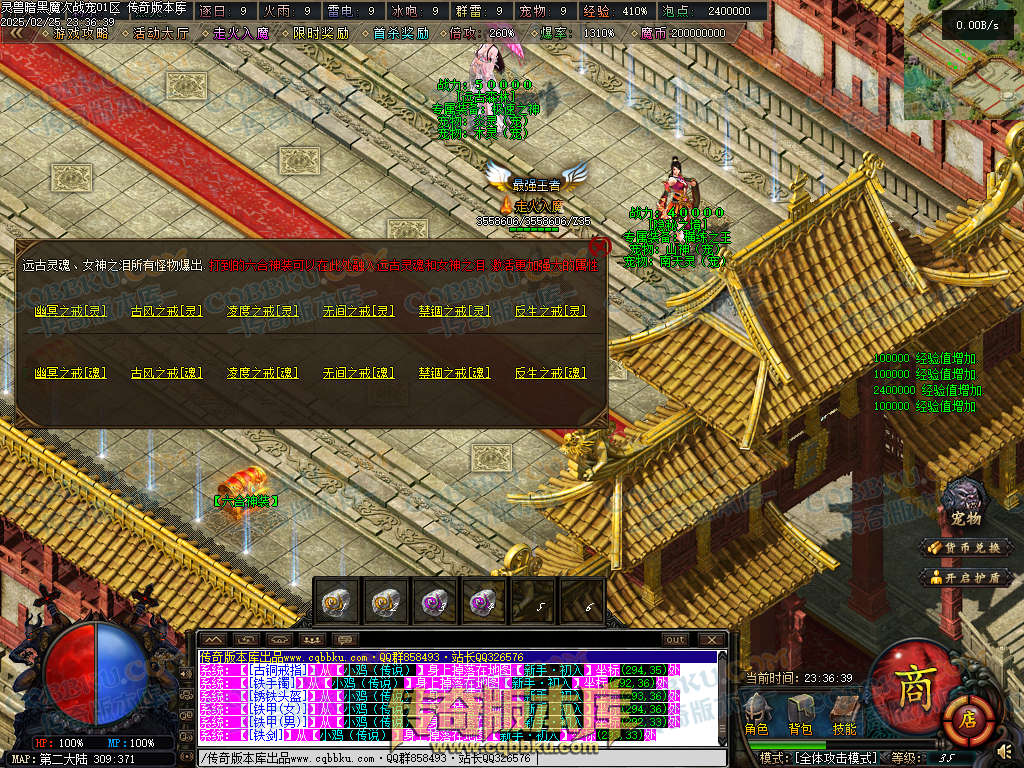 灵品以上装备 特殊装备 图纹 都有带 泡点经验 杀怪经验 属性 可在背包 鉴定洗炼
