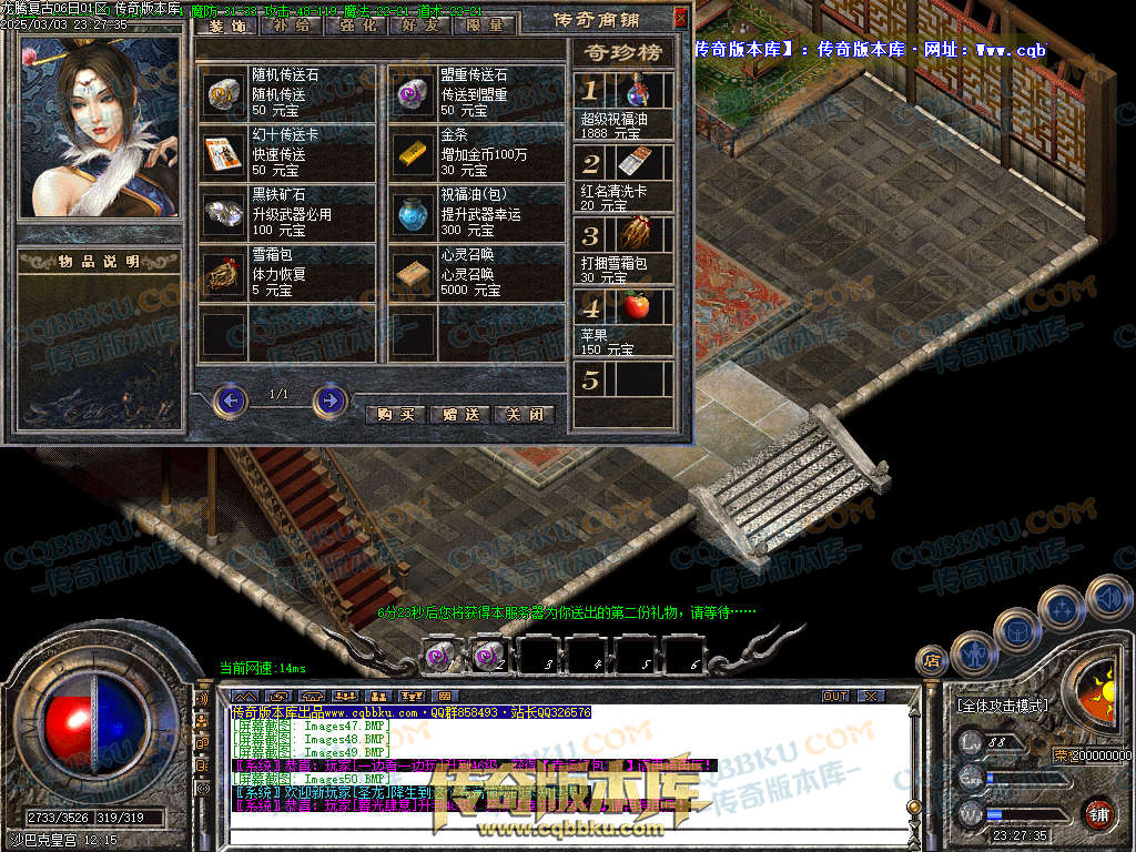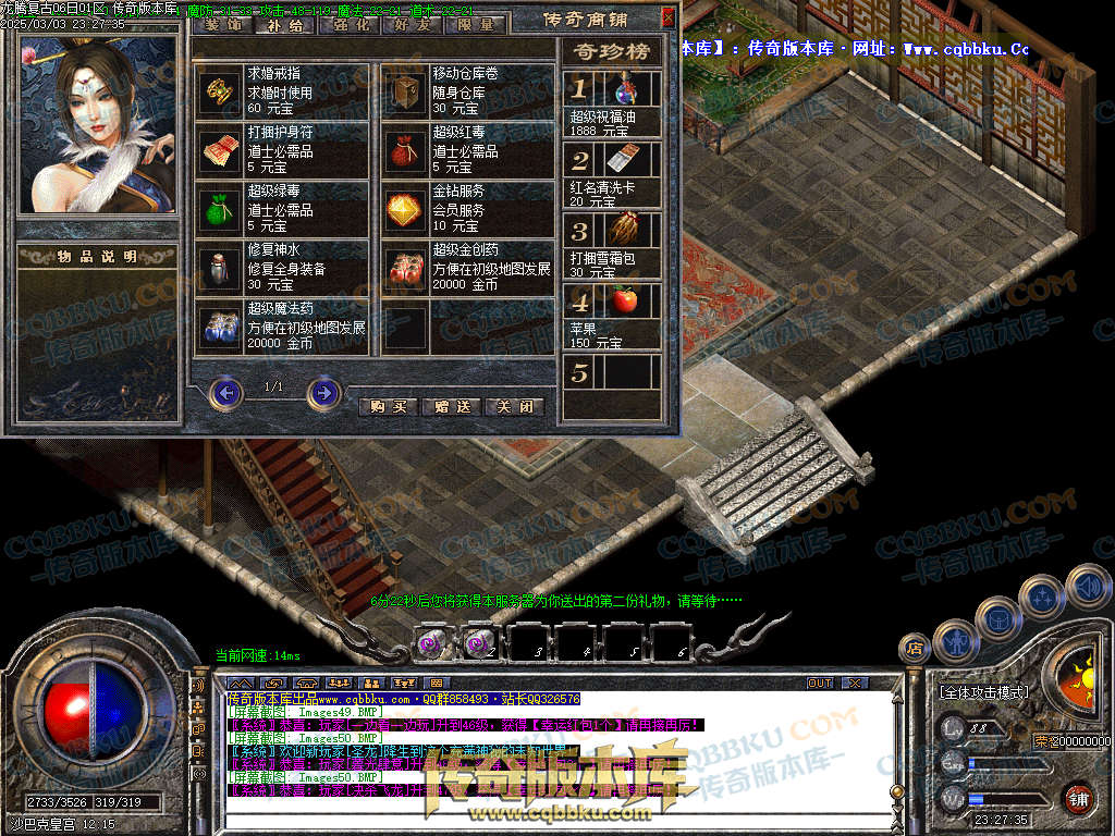 ★★充值玩家攻略★★:上线充值100-300元有个1.5倍随身泡点和5倍打怪经验,所有装备回收1.2倍。赠送幸运二项链一条和书