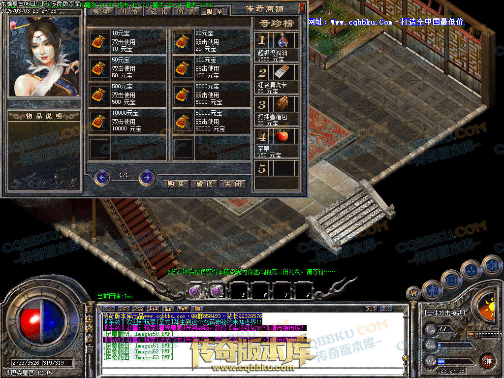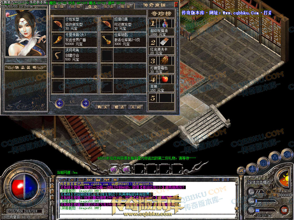 【版本介绍】本服新区第二天拿沙,新区奖励8万元宝+200金刚石,老区天天拿沙奖励3万,奖励是浮云激情最重要。