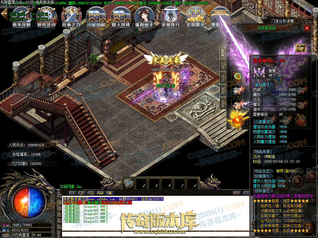 无限雷霆是1.85无限合成雷霆二合一单职业传奇,带假人功能,散人扶持,四圣之力,转生大使,-狂暴之力,插件功能是由ESP支持,带大背包和自动回收系统,此端采用GOM引擎精心耗时制作,更多细节参考详情图文介绍
