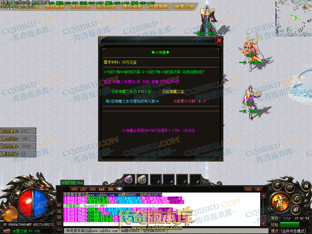 注:(神魔地图每30分钟刷新10只必爆回收件怪,每个区刷新20波共200只)