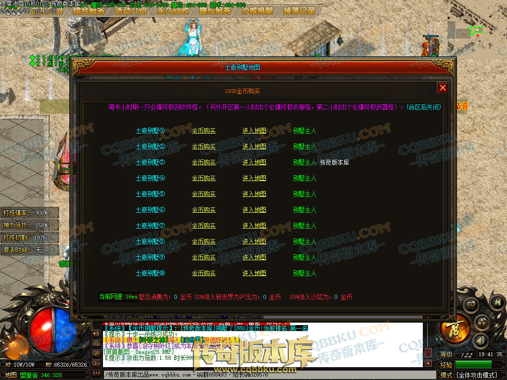 3.别墅消费分配: 20%进入新世界地图, 20%进入攻沙奖励, 20%服务器运营费
