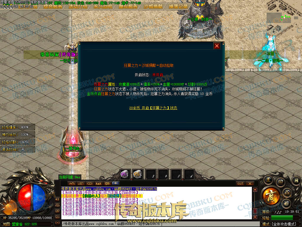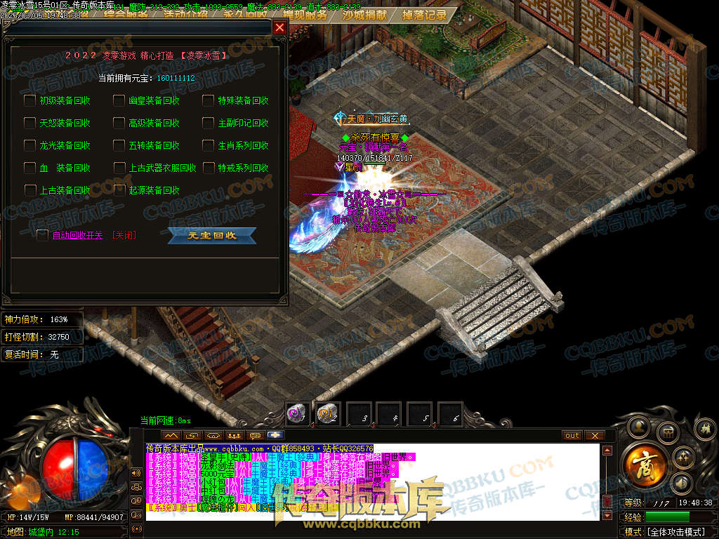 01-413凌零冰雪单职业传奇服务端-ESP插件-沙城捐献-大背包-狂暴之力-自动拾取-自动回收 | ||