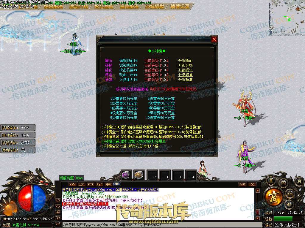 凌零冰雪是冰雪单职业传奇,沙城捐献,狂暴之力,自动拾取,自动回收,狂暴之力,插件功能是由ESP支持,带大背包和自动回收系统,此端采用GOM引擎精心耗时制作,更多细节参考详情图文介绍