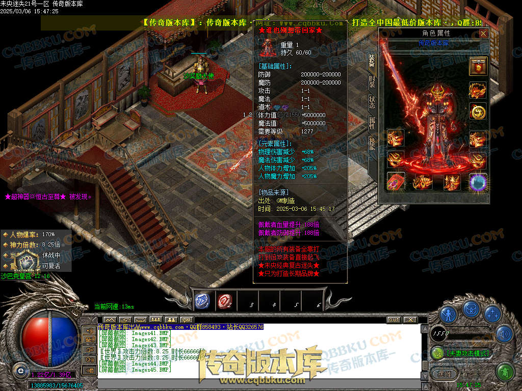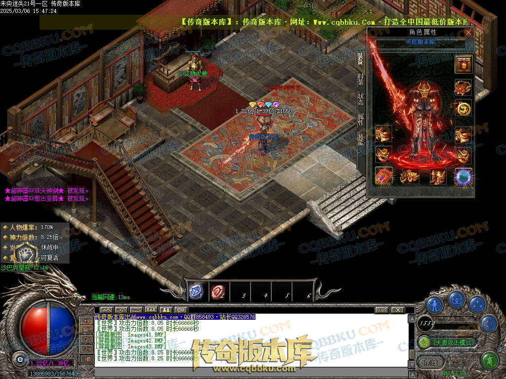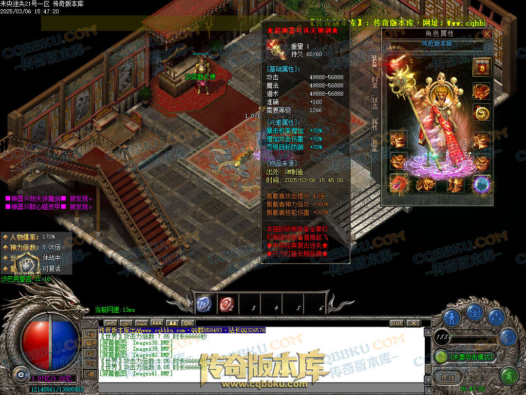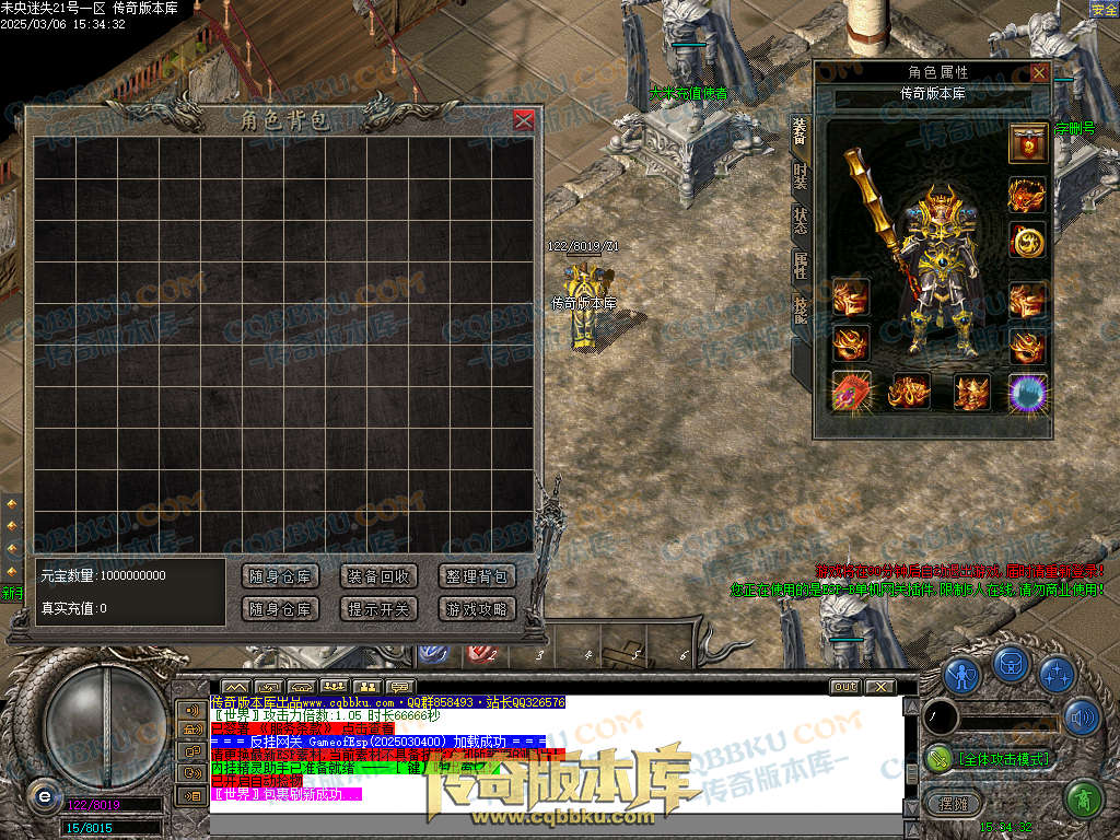开区落地 18转+惊涛石+惊涛令+霸业斗笠+防麻盾牌+元素勋章(打怪超级快.上线有3.36倍神力)
