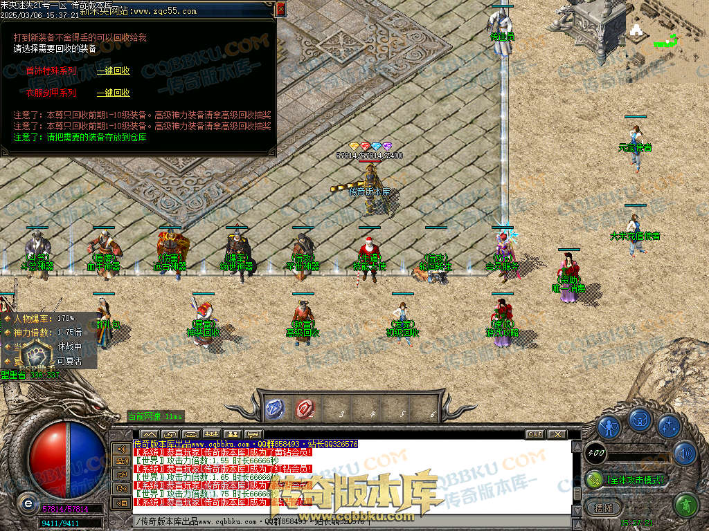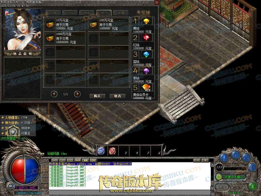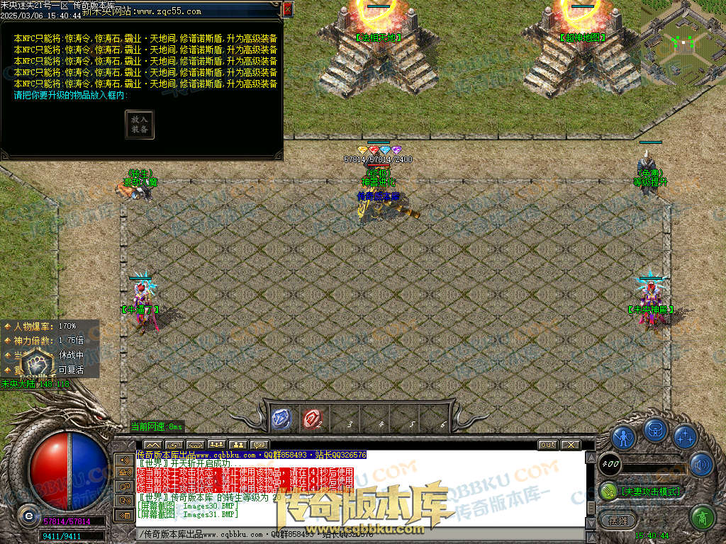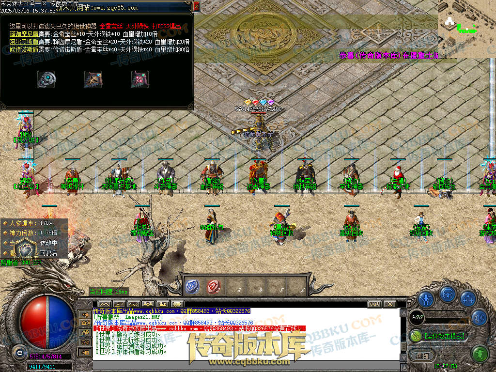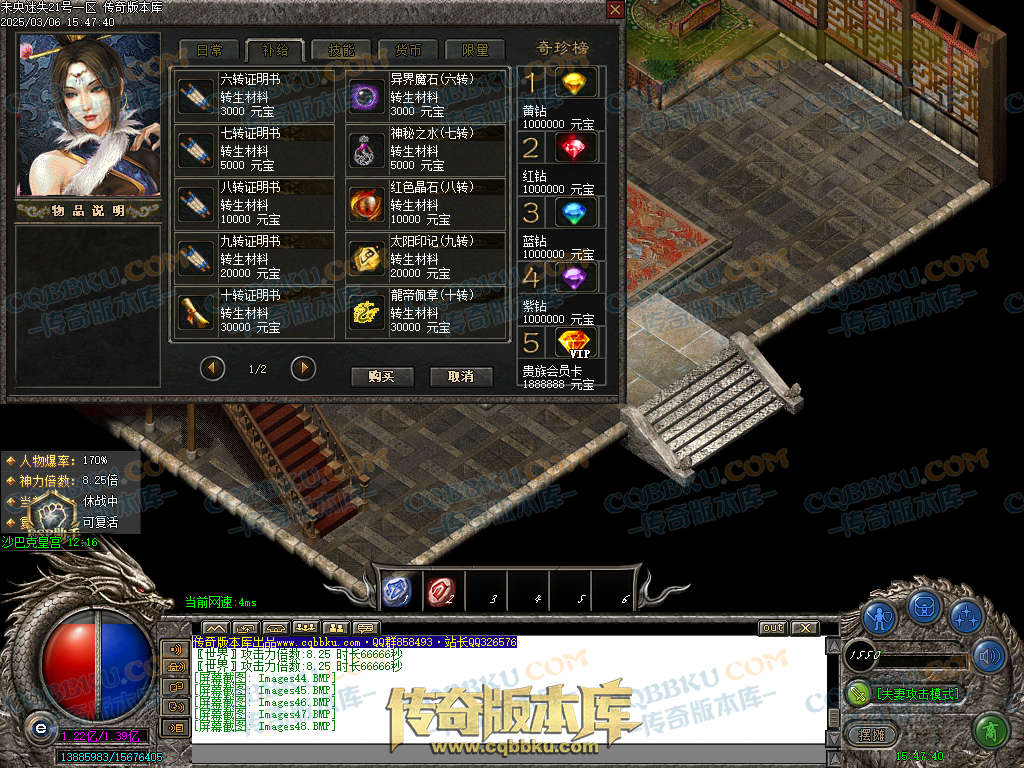 实力玩家可以充元宝上线买合成材料(怪物也会爆出合成材料.不着急的慢慢打)