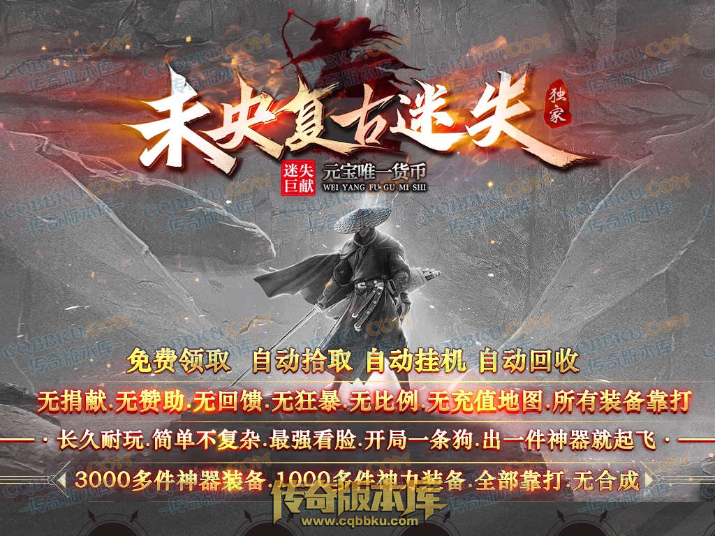 ⑴未央复古迷失:本服有1-10级起步装.10-1000级倍攻装.1000级以后有几百件趋神器.(全部靠打)